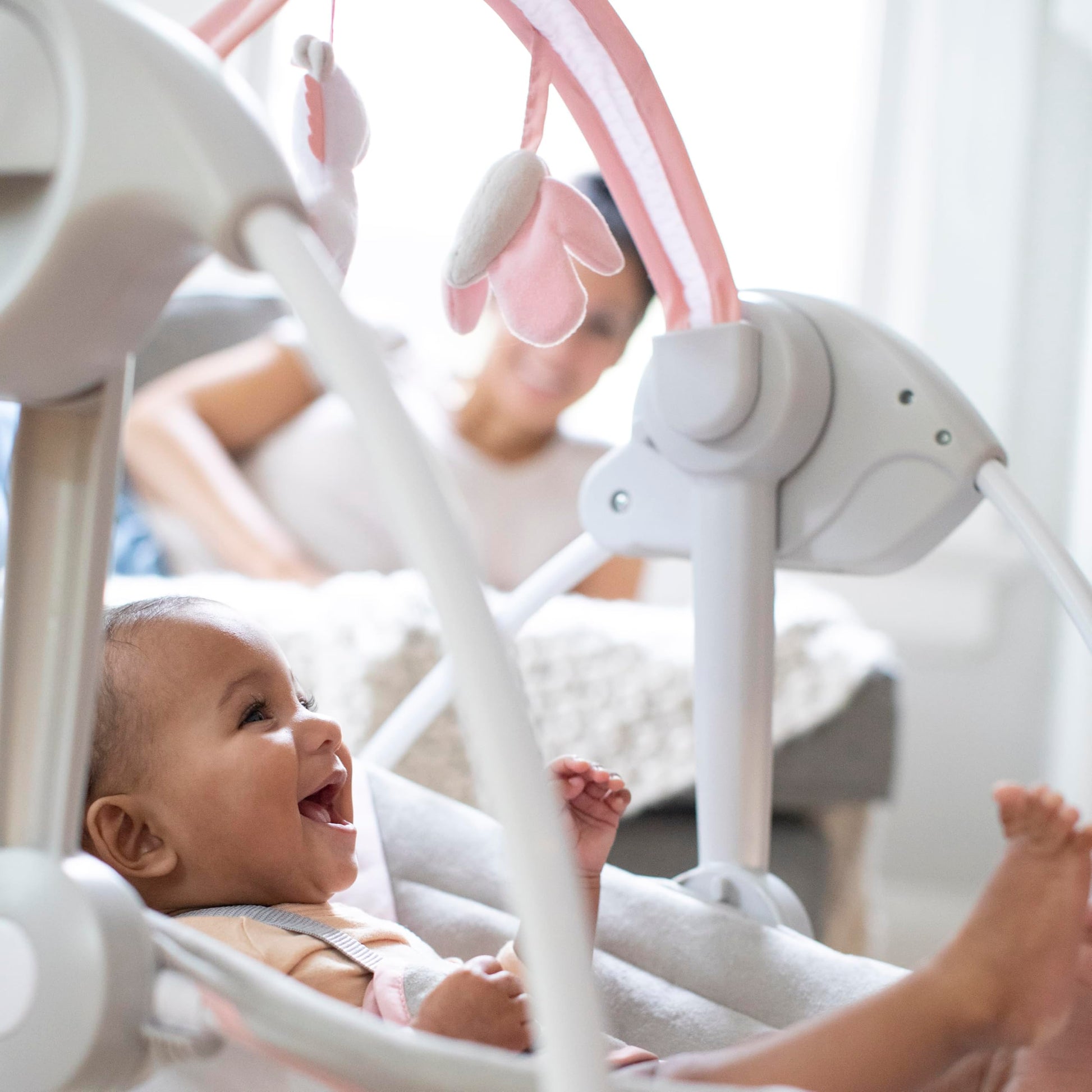 - Q: How many swing speeds does the Ingenuity Comfort 2 Go Portable Swing offer? A: This swing features 6 different swing speeds to soothe your baby.