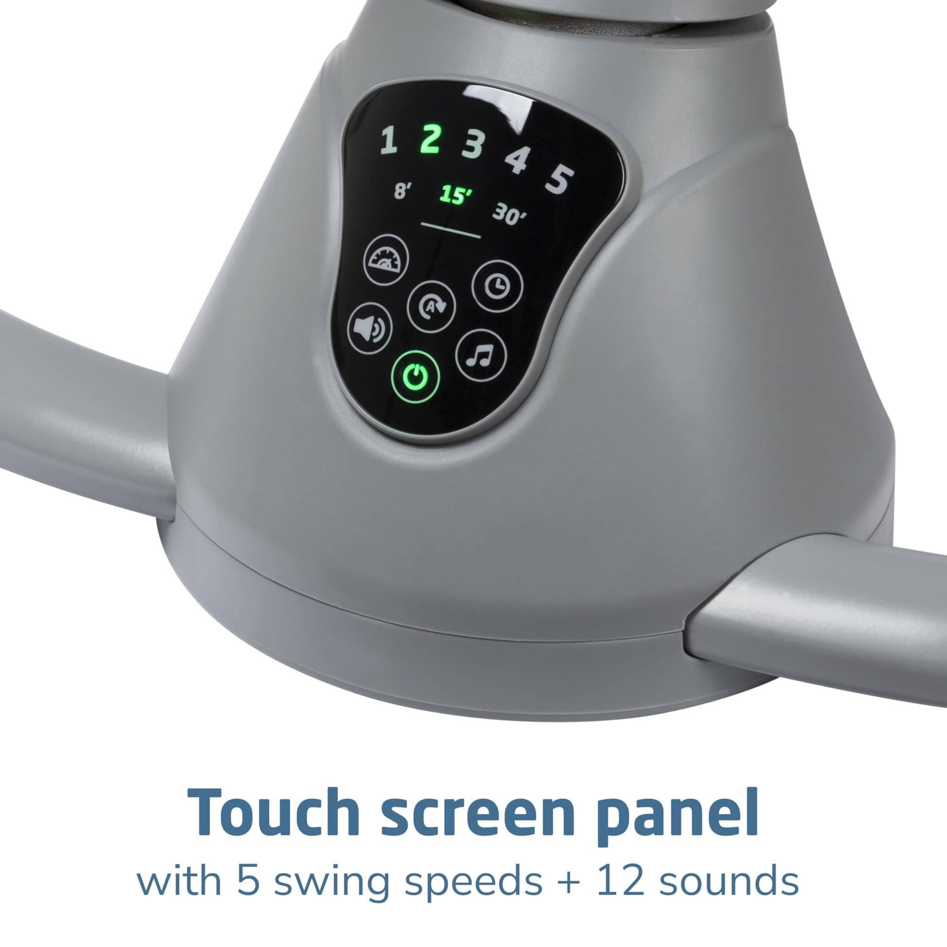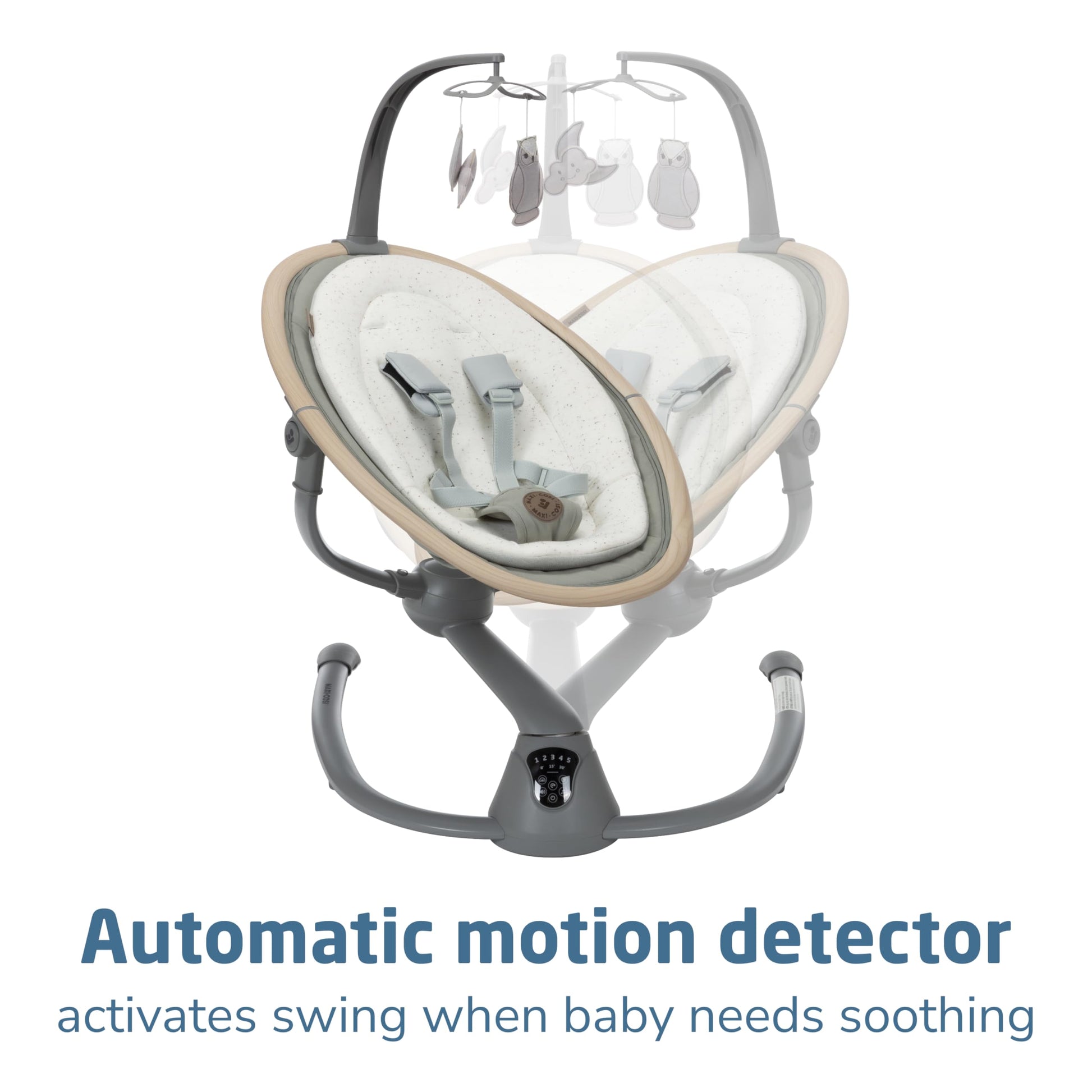 - Q: What features does the Cassia Swing offer for soothing my baby? A: The Cassia Swing includes an automatic motion detector that activates the swing when your baby needs soothing, offering 5 swing speeds and 12 melodies or nature sounds to enhance comfort.