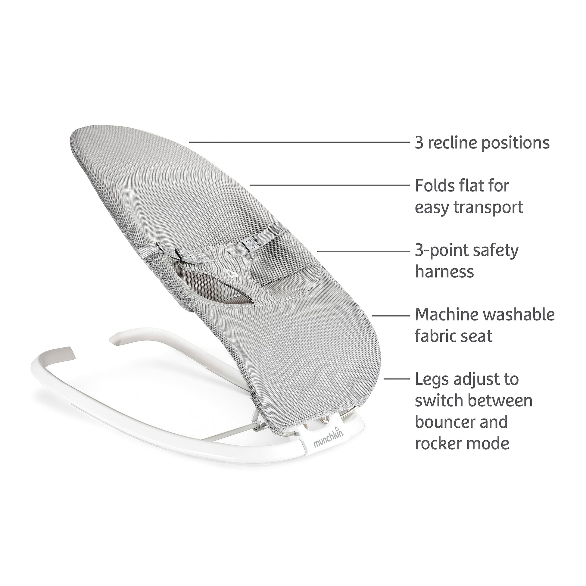 - Q: How portable is the Munchkin Spring Baby Bouncer? A: The bouncer is lightweight and folds flat, making it convenient for storage and transport.