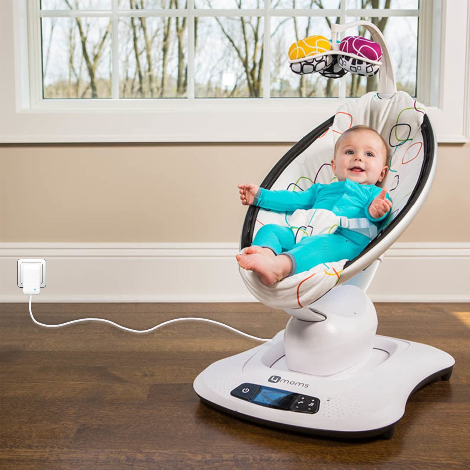 - Q: Can I use this adapter with other brands of baby swings? A: No, this adapter is specifically designed for 4moms products and is not suitable for other brands, especially those requiring 6 volts, 5 volts, or 9 volts.
