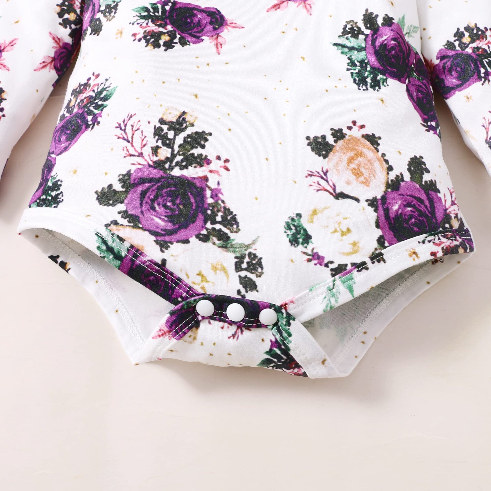 0-6 Months Baby Girl Clothes Toddler Girl Onesies Purple Suspender Skirt Set Long Sleeve Ruffle Romper Infant Jumpsuit Bodysuit