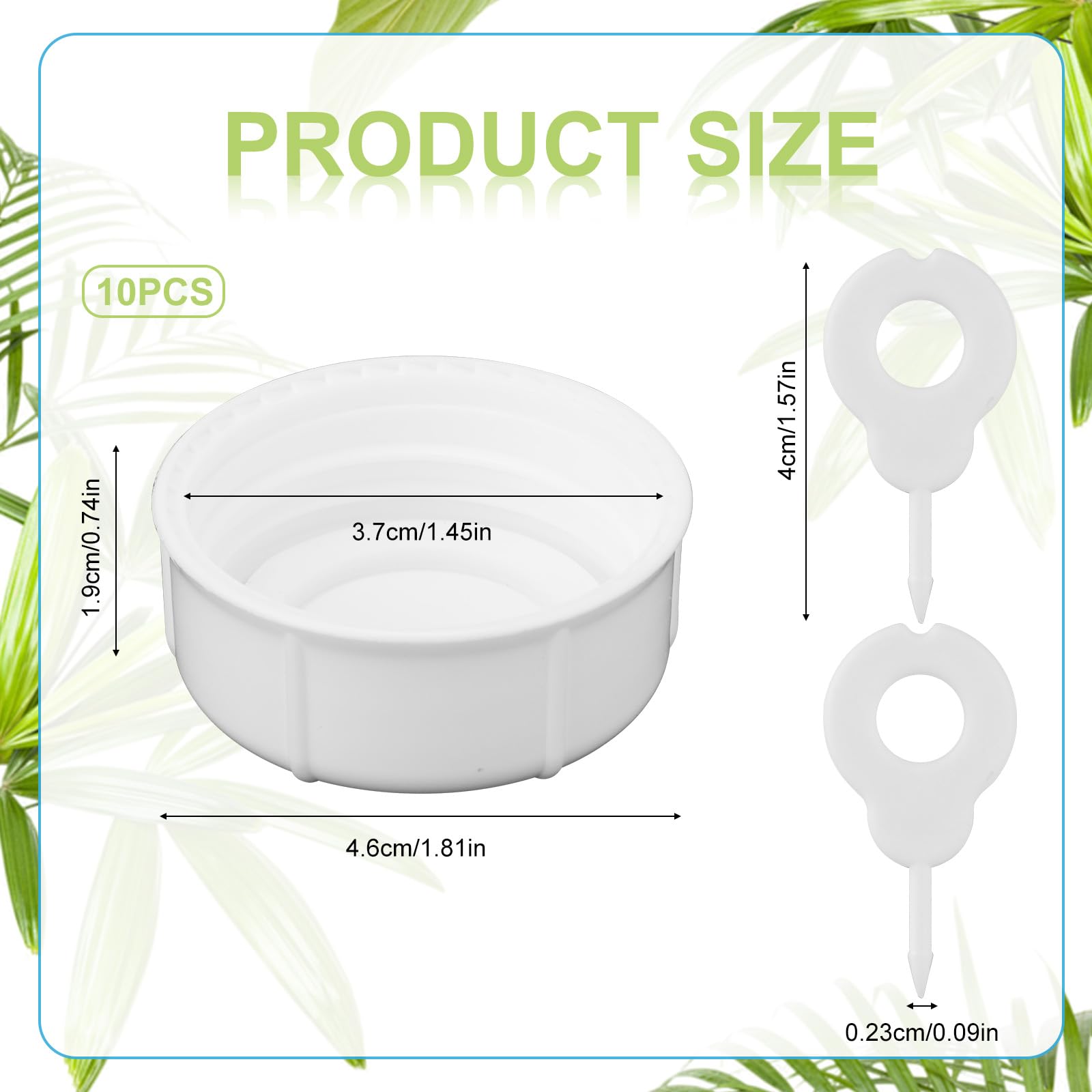 Specification: Main Color: white Material: PP Product Size: Needle: 4x0.23cm/1.57x0.09in Bottle cap: 3.7cm/1.45in inside, 4.6cm/1.81in outside, 1.9cm/0.74in high Package details: 10 x narrow baby bottle caps 2 x punch needles Note: Due to manual measurement, the size and weight may have a certain error. Due to the difference between different monitors, there may be a slight color difference existed.