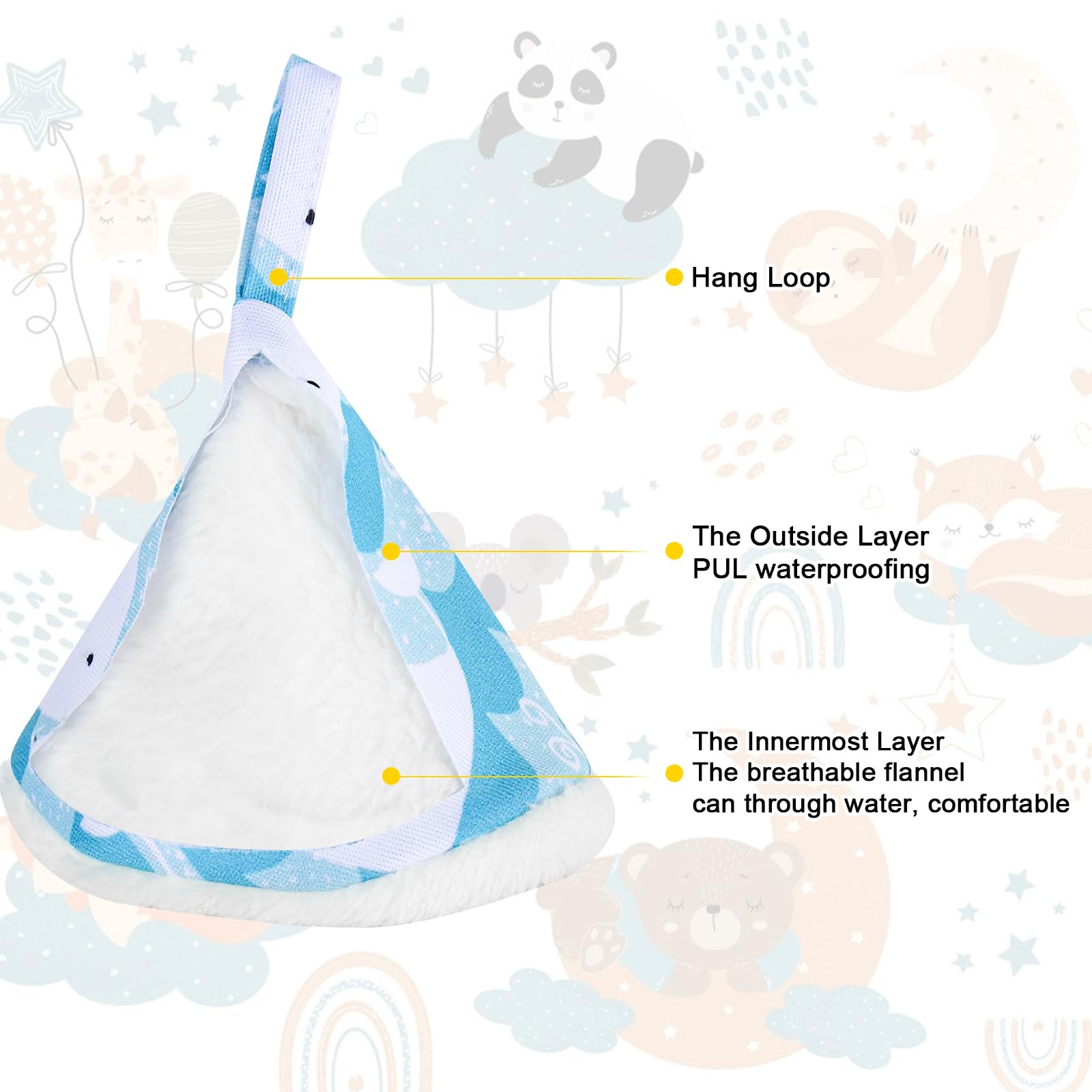 • Q: Does the Peepeeteepe come with a storage solution? A: Yes, the Peepeeteepe set includes a storage bag that has snap button straps, making it easy to carry and hang on strollers, cribs, or baby backpacks.