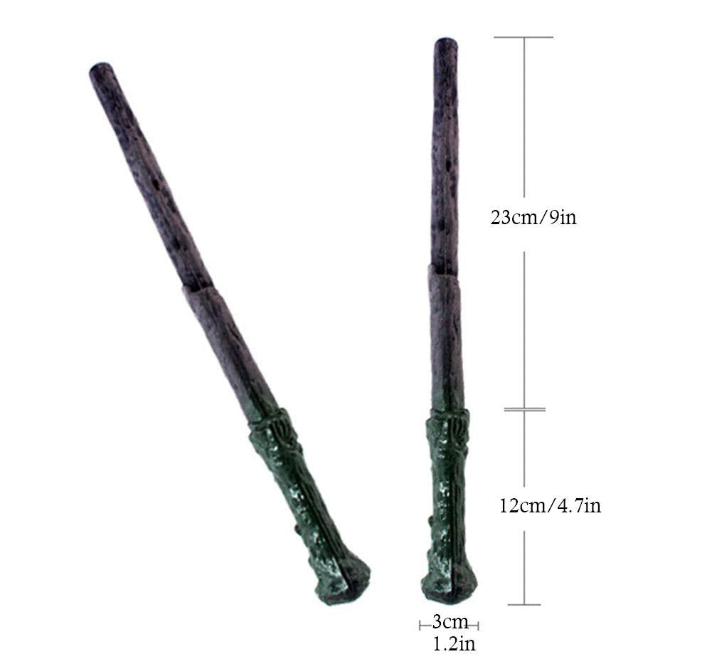 - Q: What are the dimensions of the wand, scarf, and glasses? A: The wand measures approximately 13.7 inches in length, the scarf is 57 inches long and 2.75 inches wide at its widest point, and the glasses measure 5.5 inches in width and 2.1 inches in height.