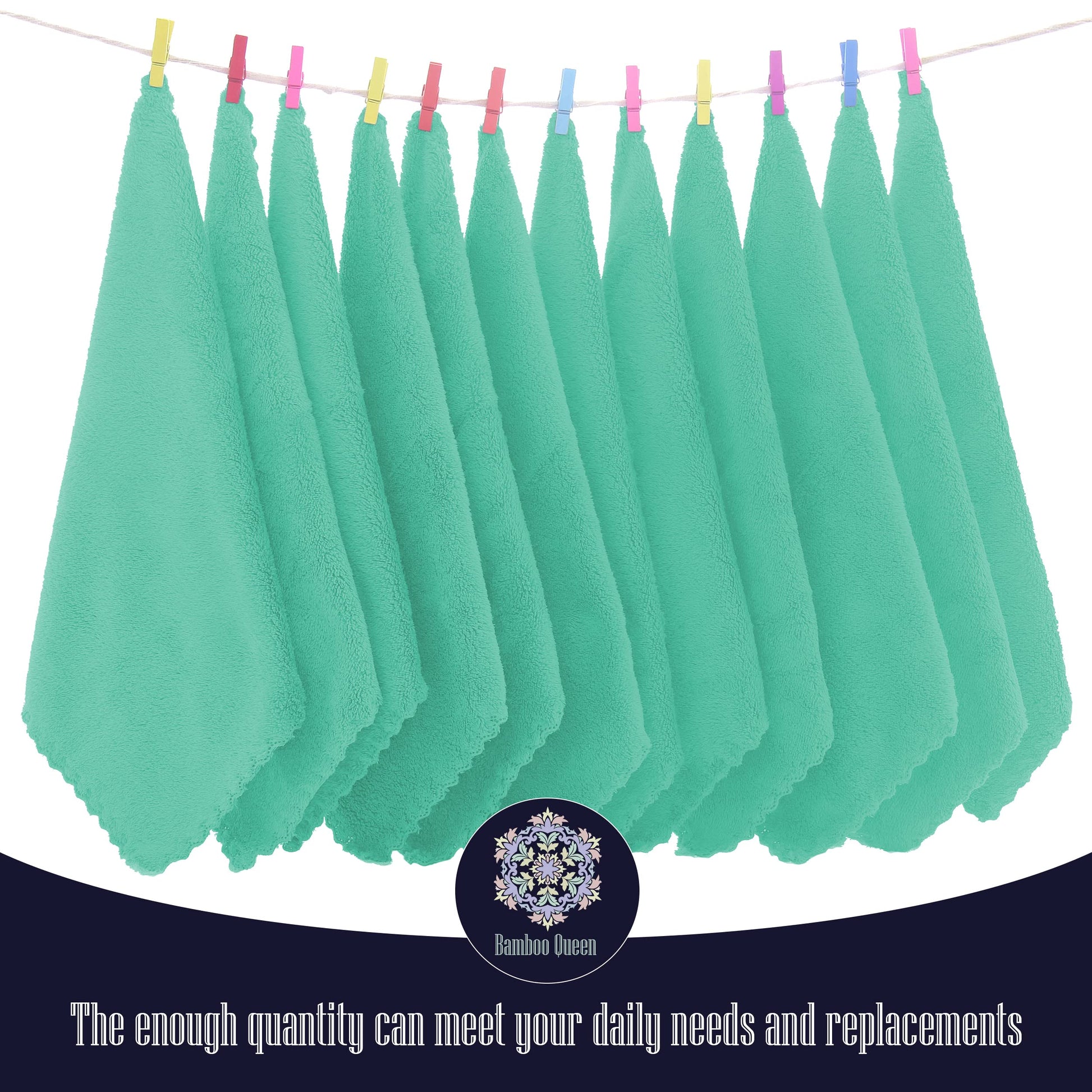 - Q: What is the size of each washcloth? A: Each washcloth measures 10 by 10 inches.