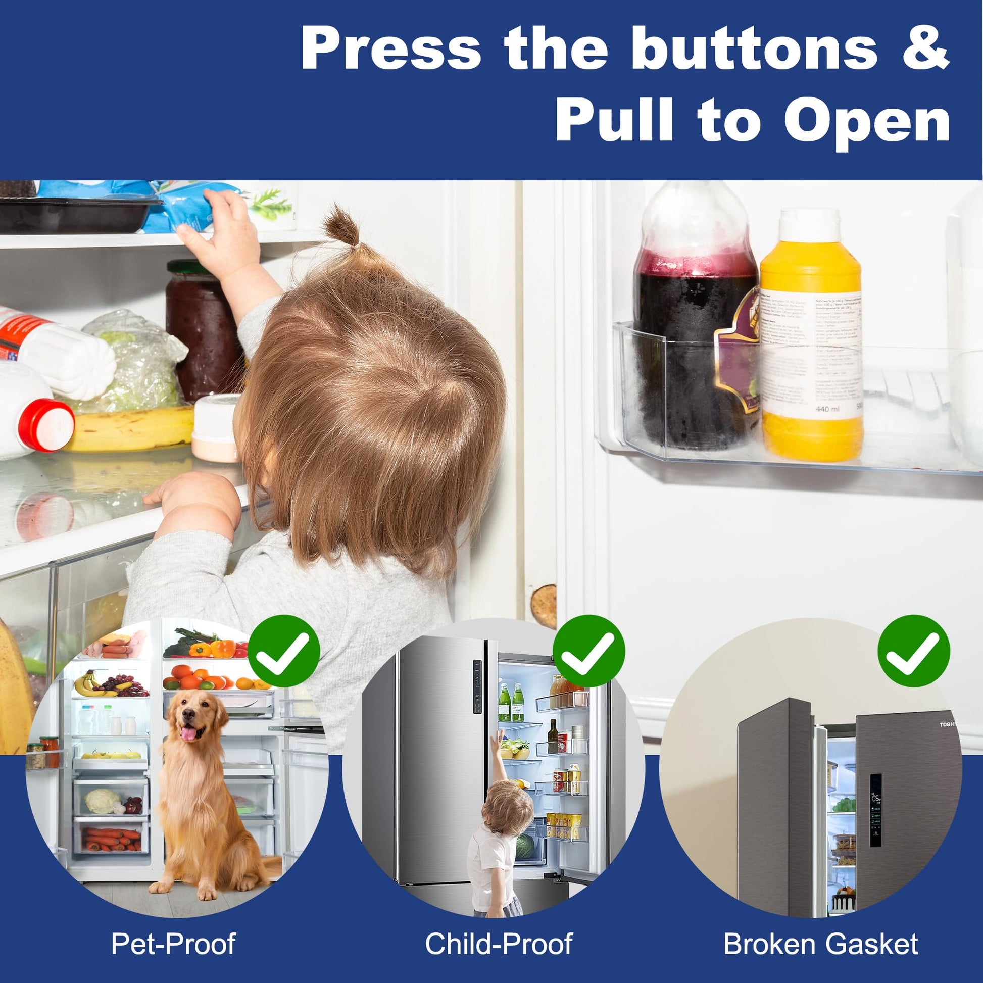 - Q: How does the child proof fridge lock work? A: The child proof fridge lock operates by pressing two buttons simultaneously to unlock. Once the refrigerator door is closed, the lock automatically secures itself, ensuring safety for kids and pets.