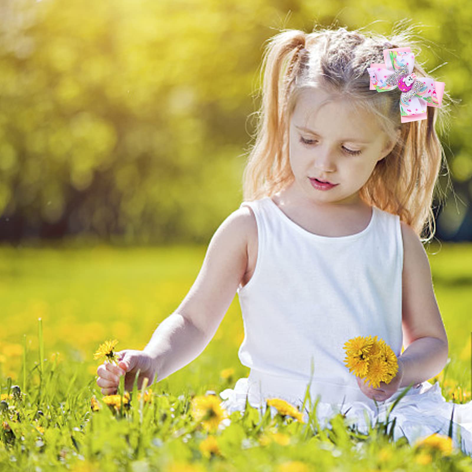 - Q: What are the dimensions of the Easter bows? A: The Easter hair bows measure approximately 12.7 centimeters, or 5 inches, making them a versatile accessory for various hairstyles.
