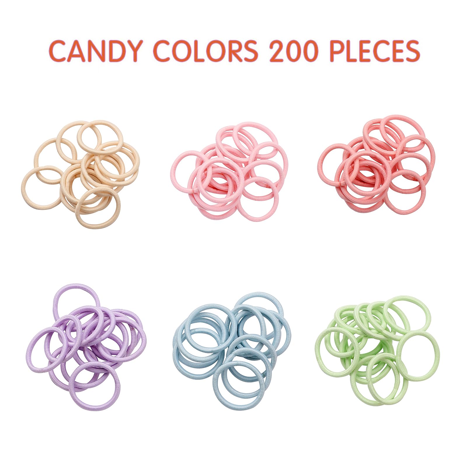 - Q: How many hair ties come in a pack? A: Each pack contains 200 elastic hair ties in various colors.