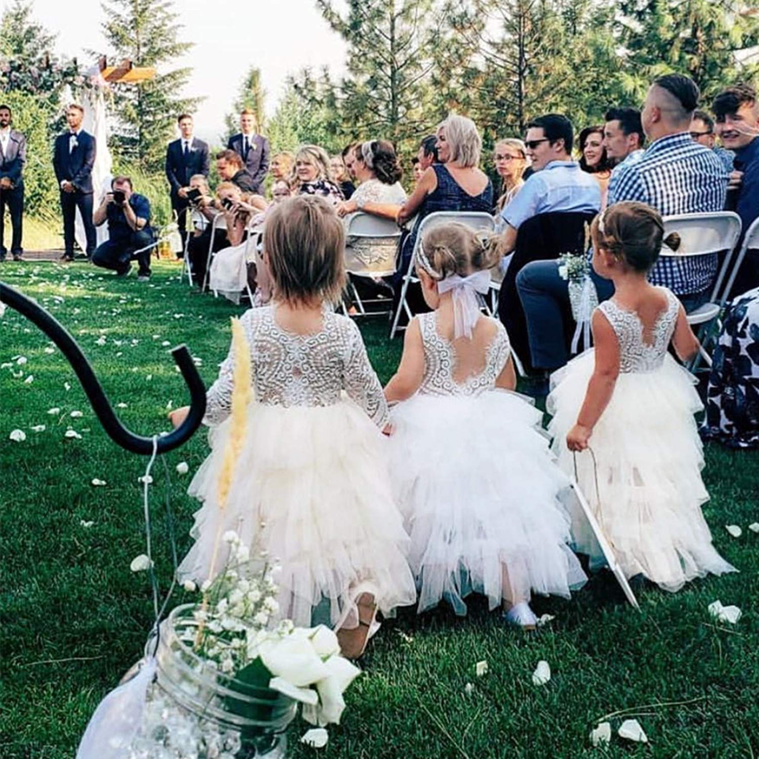 - Q: Are there any special features of this dress? A: Yes, it features a beautiful open lace back and tiered layers in the skirt, enhancing its princess-like charm.
