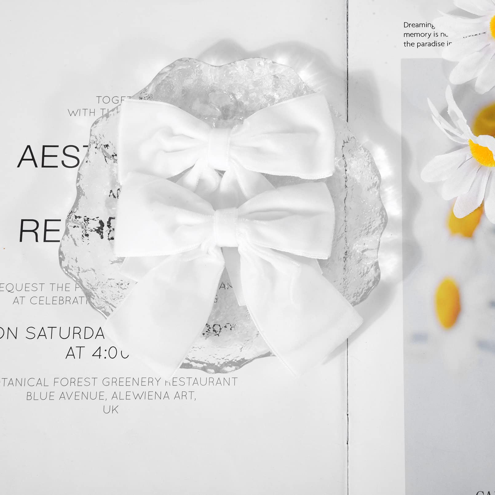 - Q: How many bows are included in the package? A: Each package includes 2 white velvet hair bows.