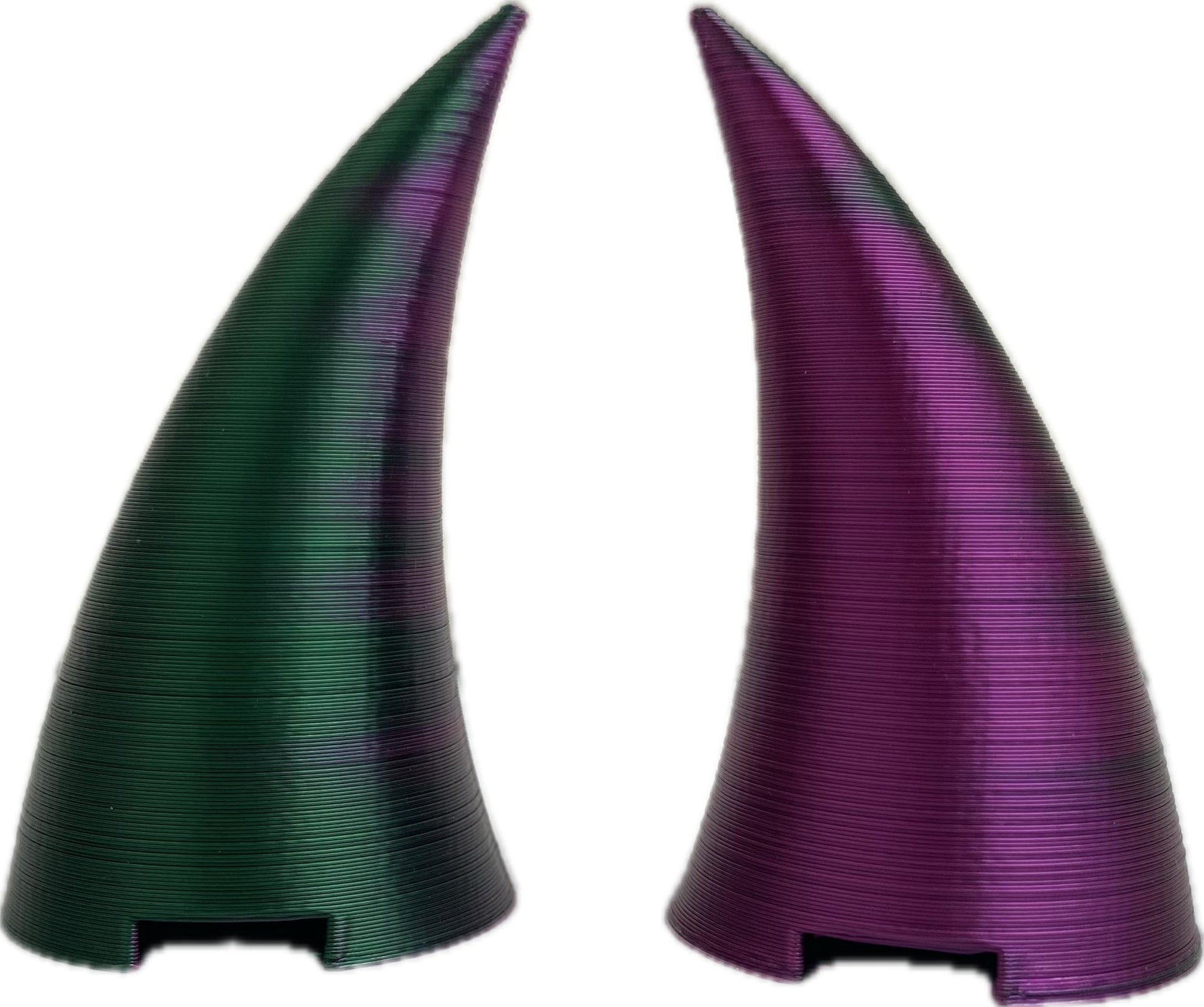 - Q: What materials are used to make the Demon horns? A: The Demon horns are made from 3D printed plastic.