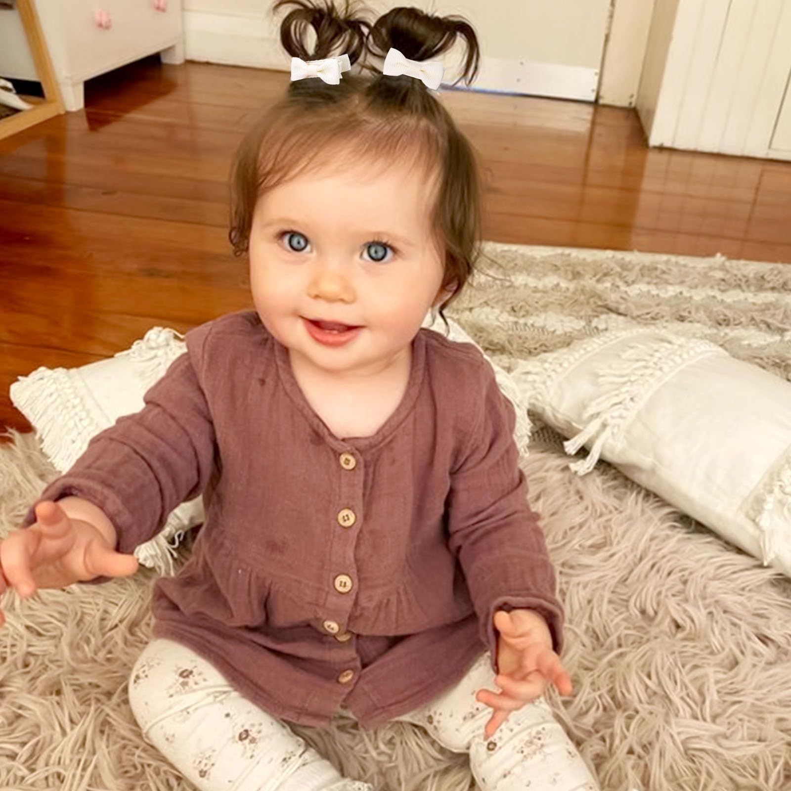 - Q: What is the size of the hair clips? A: Each hair clip features a 2 inch baby bow that is lightweight and suitable for infants and toddlers.