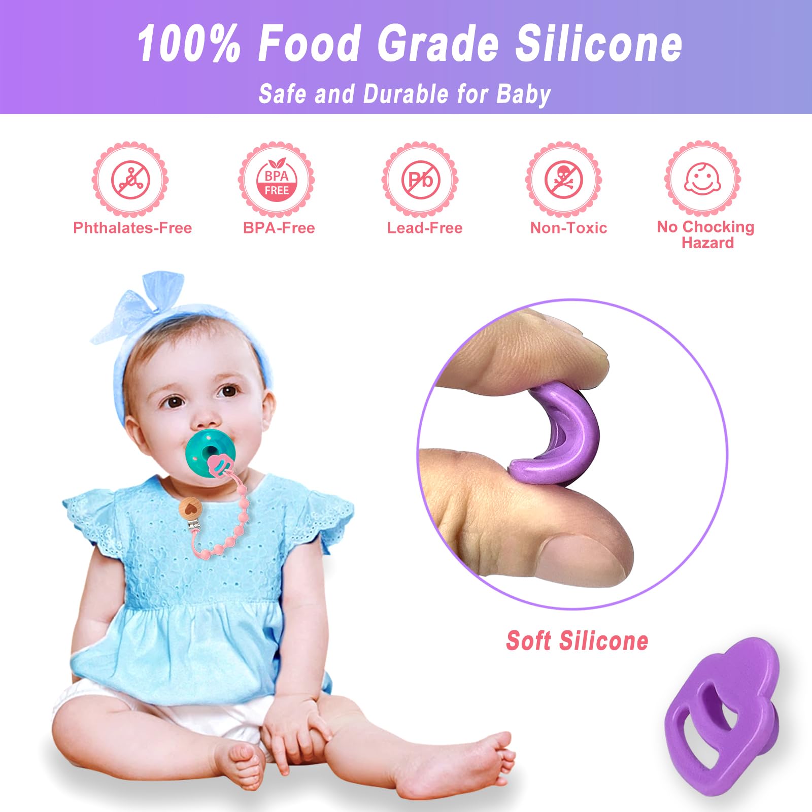 • Q: What are the benefits of using the Silicone Pacifier Clip Adapter Rings? A: The Silicone Pacifier Clip Adapter Rings help prevent dropped or lost pacifiers, keeping them clean and secure. They ensure that the clip string does not rub against your baby's mouth, enhancing comfort.