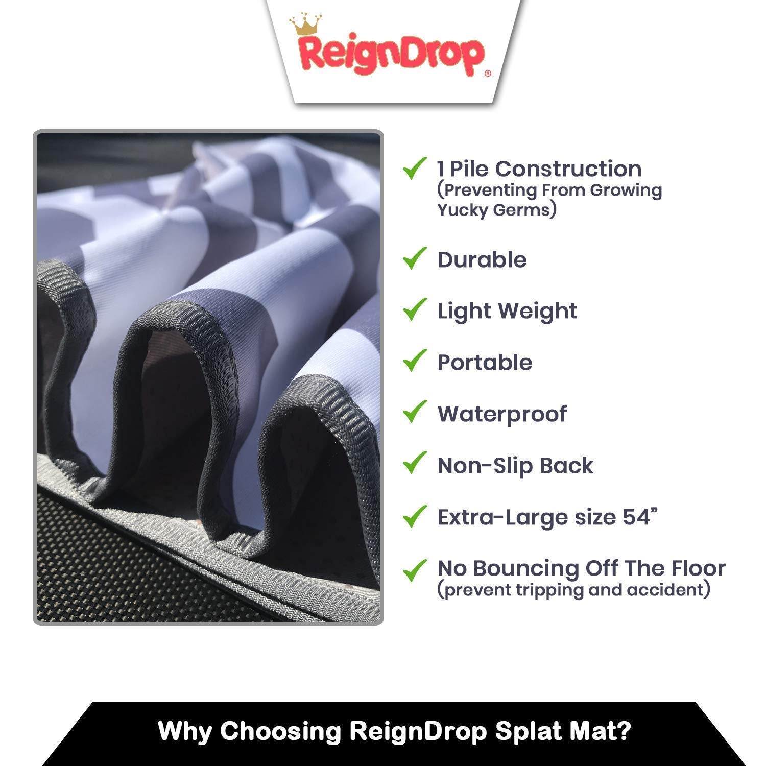 - Q: Is the Splat Mat waterproof? A: Yes, the Splat Mat is waterproof, designed to protect your floors from spills and messes.