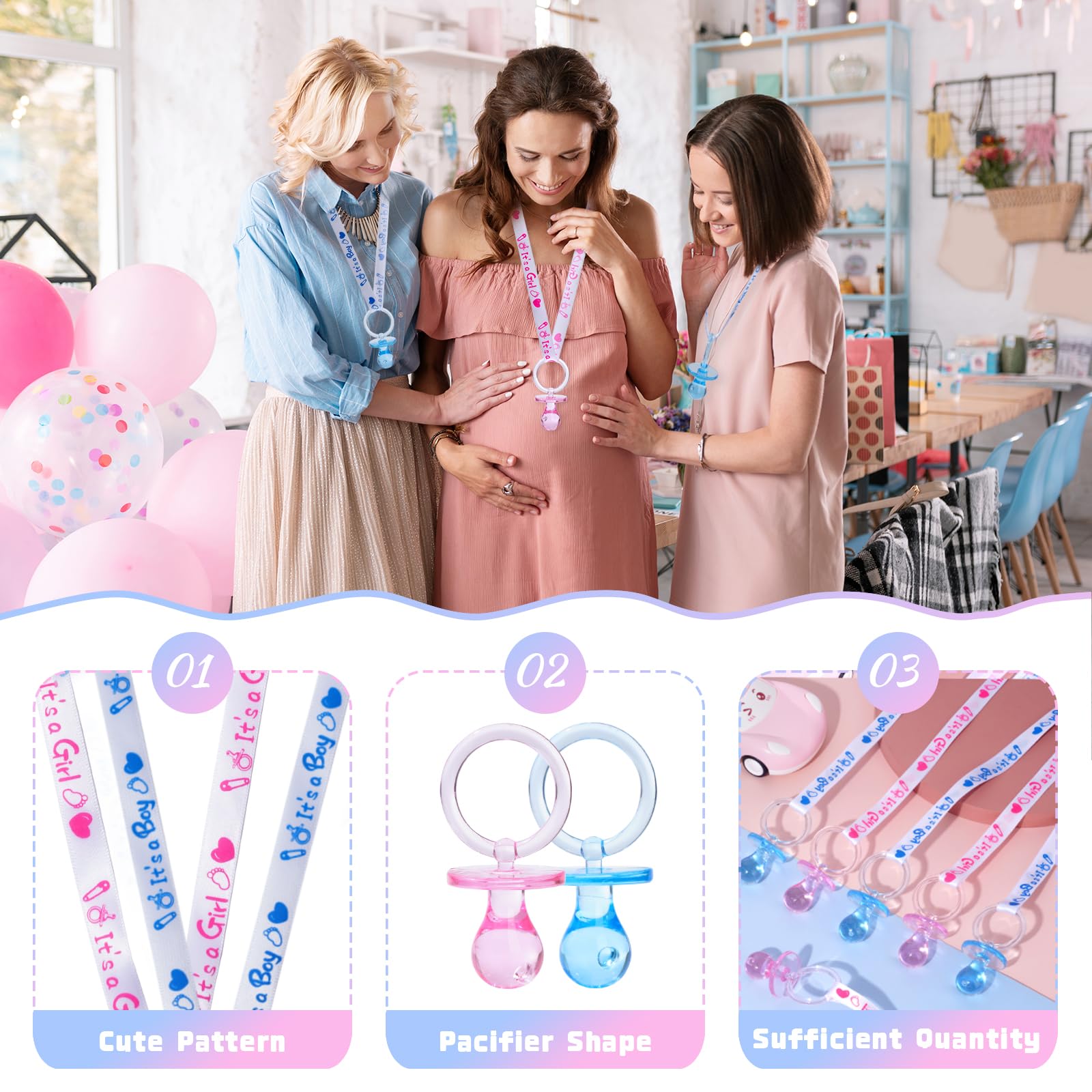 - Q: Can the pacifier necklaces be used for gender reveal parties? A: Absolutely! These pacifier necklaces are perfect as party favors or props for gender reveal and baby shower games.
