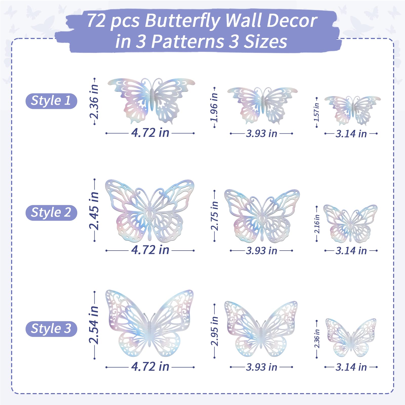 - Q: How many butterfly decorations are included in the package? A: The package includes a total of 72 butterfly decorations, with 12 pieces per pack across six small packs, featuring four pieces of each size and style.
