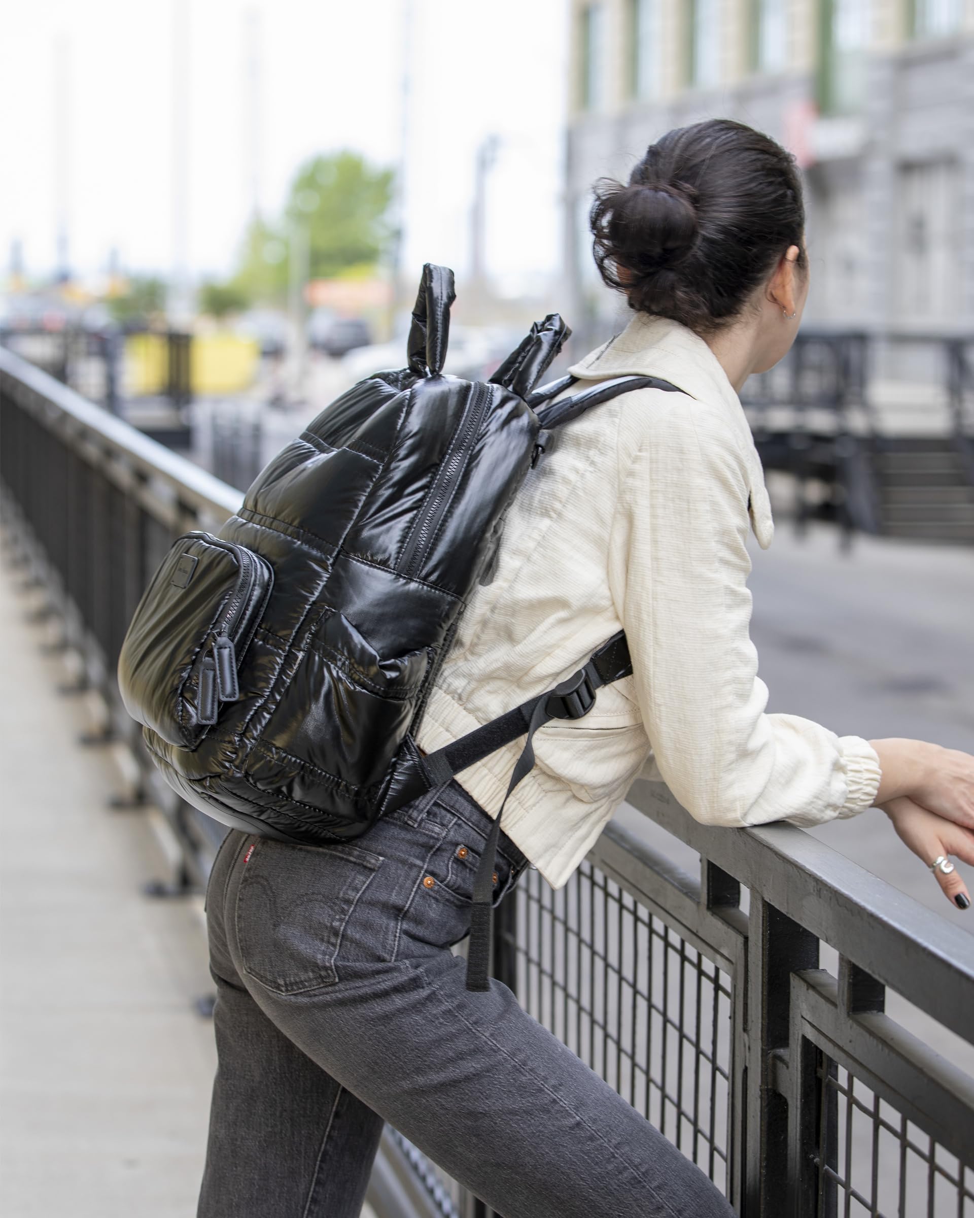- Q: How many storage compartments does this backpack have? A: This backpack includes multiple storage compartments, specifically 2 exterior pockets, 6 interior pockets, and a zippered front pouch for easy access.