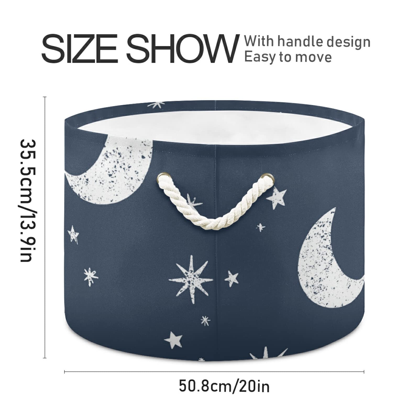 - Q: What are the dimensions of the ALAZA Moon Stars and Clouds Storage Basket? A: The dimensions of the ALAZA Storage Basket are 20 inches by 20 inches by 14 inches.
