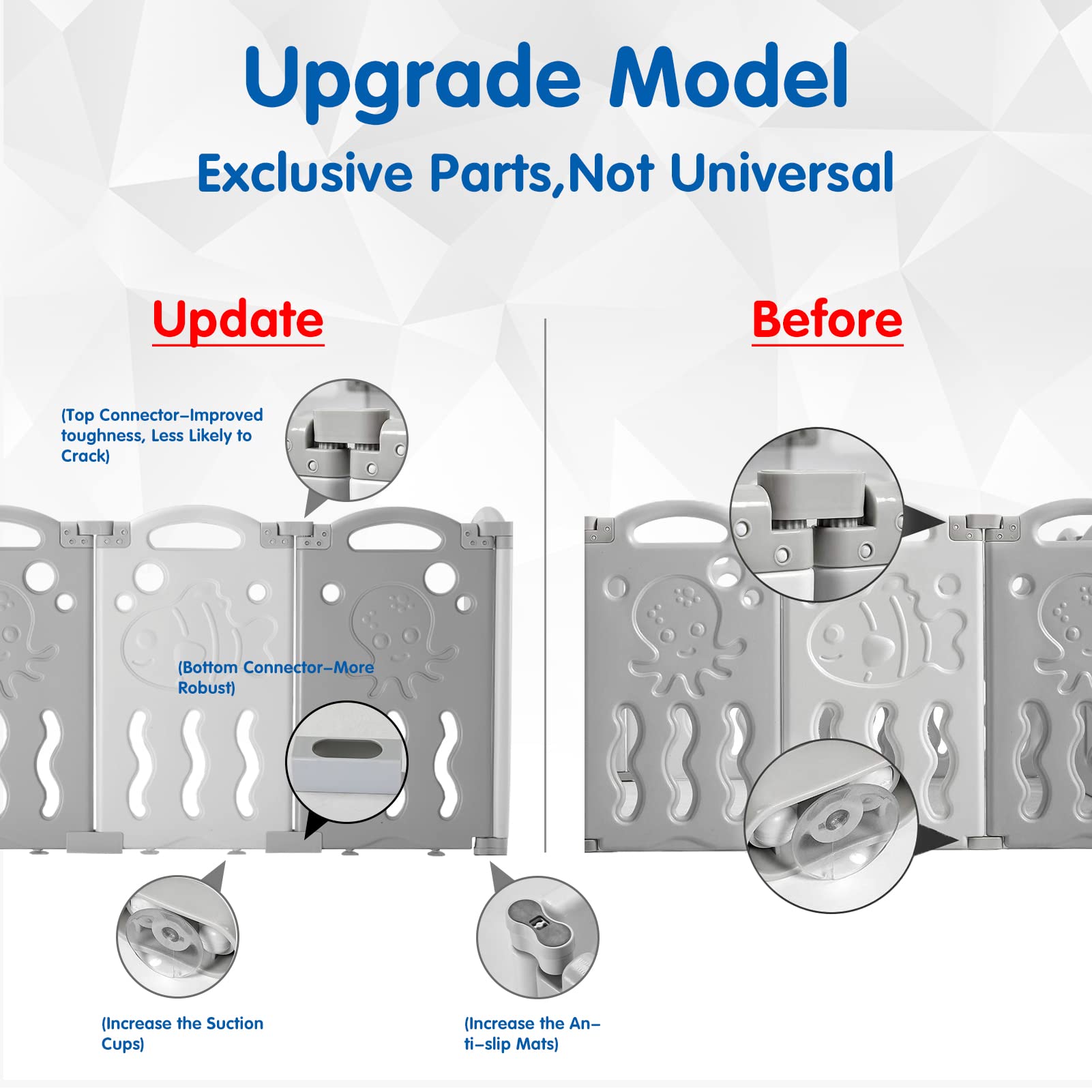 - Q: How many panels does the playpen come with? A: The playpen includes a total of 18 panels, allowing for customizable configurations.