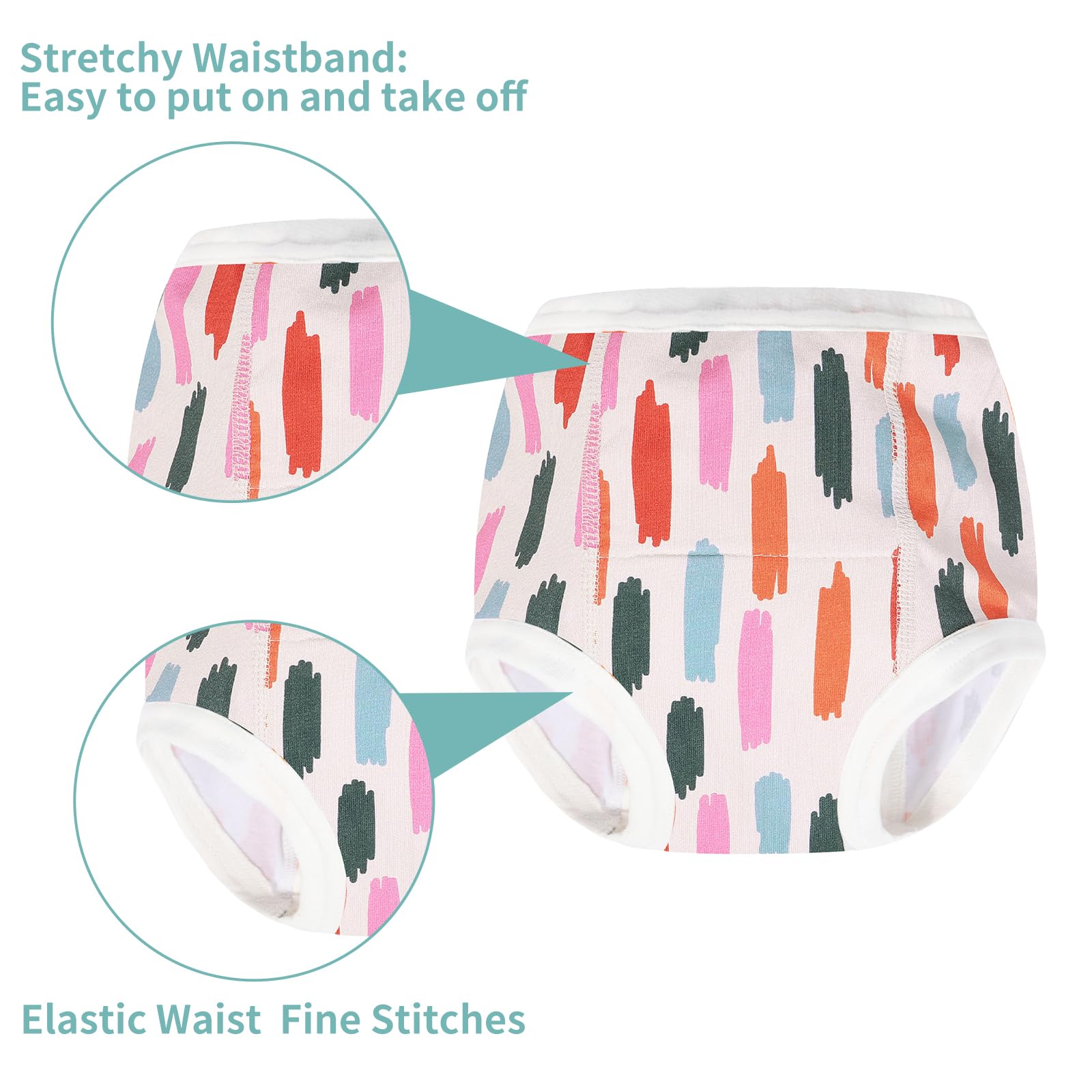 - Q: What features make these training pants comfortable for toddlers? A: These training pants have a stretchy waistband for easy on and off, soft inner and outer cotton layers to prevent rashes, and fine stitches to keep the baby's skin dry and comfortable.