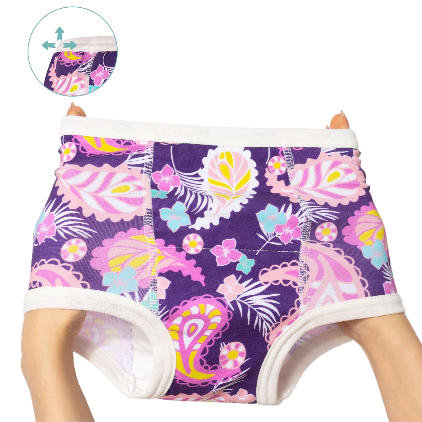 - Q: What features enhance the comfort of these training pants? A: The training pants have a soft inner and outer cotton layer, an elastic waistband, and fine stitching that helps keep the baby's skin dry and comfortable.
