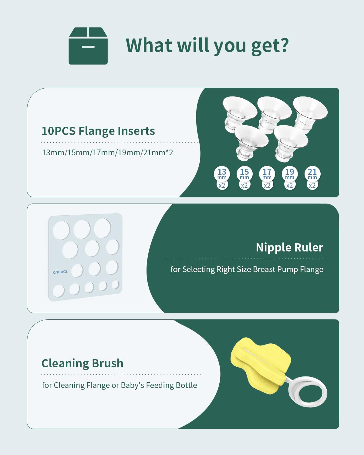 - Q: How can I ensure the best fit while using the flange inserts? A: To ensure the best fit, use the included nipple ruler to measure your nipple size and select the corresponding flange size from the kit.