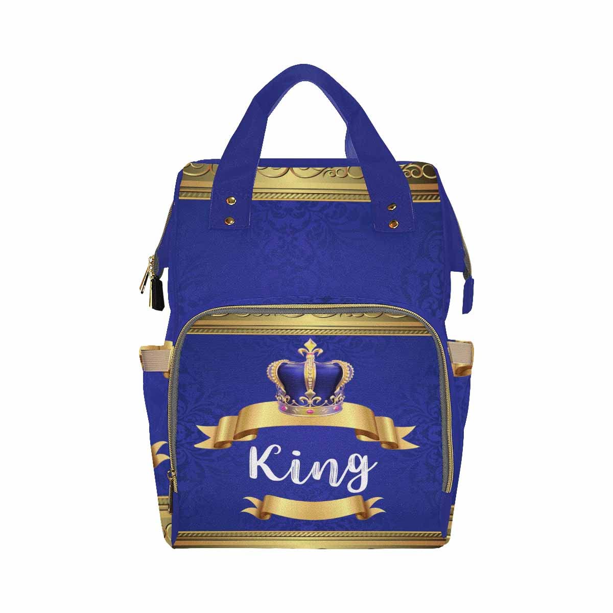 Artsadd Custom Name Diaper Bag For Mom, Personalized Blue Golden Crown Backpack With Stroller Straps Large Travel Shoulder Bag N