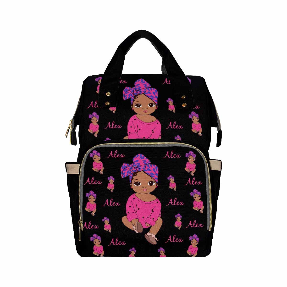 - Q: Can I customize the diaper bag with my child's name? A: Yes, you can customize the diaper bag. Simply click the 'Customize Now' button and enter the name you would like printed on the bag.