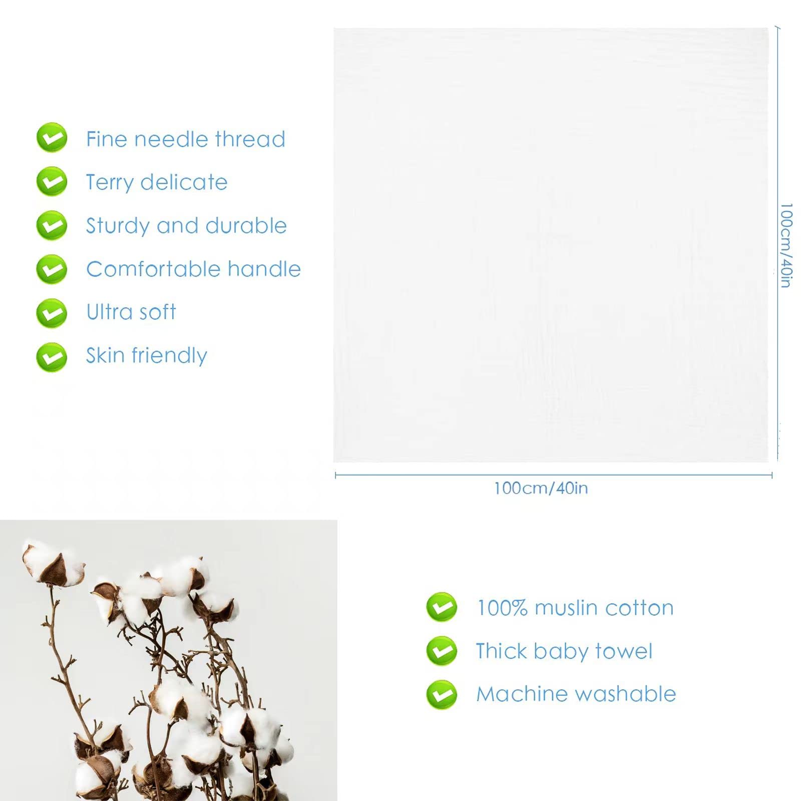 Are you looking for a soft, breathable, and absorbent muslin baby bath towel? Do you want a multifunctional newborn bath towel? Our white baby towels to baby  for kids will be the perfect addition to your baby care essentials and the ultimate must-have for your little one's bath time routine! ? Premium Quality With the meterial of premium cotton muslin for crafting our baby girl towels and baby boy towels,large baby bath towels muslin  care babies better.Wrap your baby in softness, warmth by using newborn muslin towels for baby after bathing. ? Absorbent The 100 cotton baby towels pink muslin towels are able to absorb water more quickly when bath time is over,keeps baby warm until its time for jammies. ? Extra Soft We are parents too,we strive to create comfy and safe muslin baby blankets for you.Our muslin cotton baby towel blanket is softer and gentler on sensitive skin.Made with natural cotton muslin swaddles, muslin baby bath towels for newborn girl are perfect for your little one's delicate skin ? Lightweight Our towel for toddlers are lightweight.Its lightweight makes it a excellent choice for travel. ? Breathable & Quick Dry Breathable fabric of soft cotton towels for babies improves airflow to reduce the risk of overheating,Freely woven muslin provides flexibility for babies to move comfortably. ? Multifunction Our newborn towels are more than pink muslin bath towels baby girls Toddler bath towel muslin large muslin bath towel hooded Stroller Cover Baby Sweat Towels Sleep Blanket ? Perfect Gift for Baby Our newborn baby towels no hood cotton boys and girls are elegant and very practical baby stuff .Infant bath towels no hood are perfect and loverly unisex baby gift for a baby registry,birthday and holiday