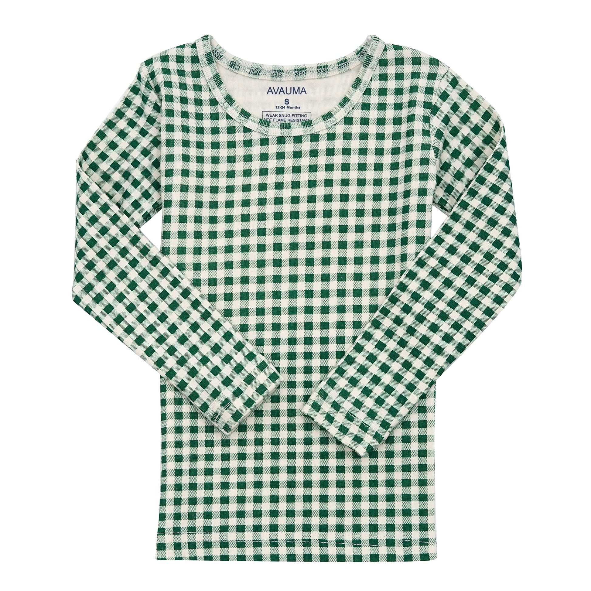 - Q: What are the design options available for the AVAUMA pajama set? A: The AVAUMA pajama set features trendy colors and patterns, including a stylish check design in green.
