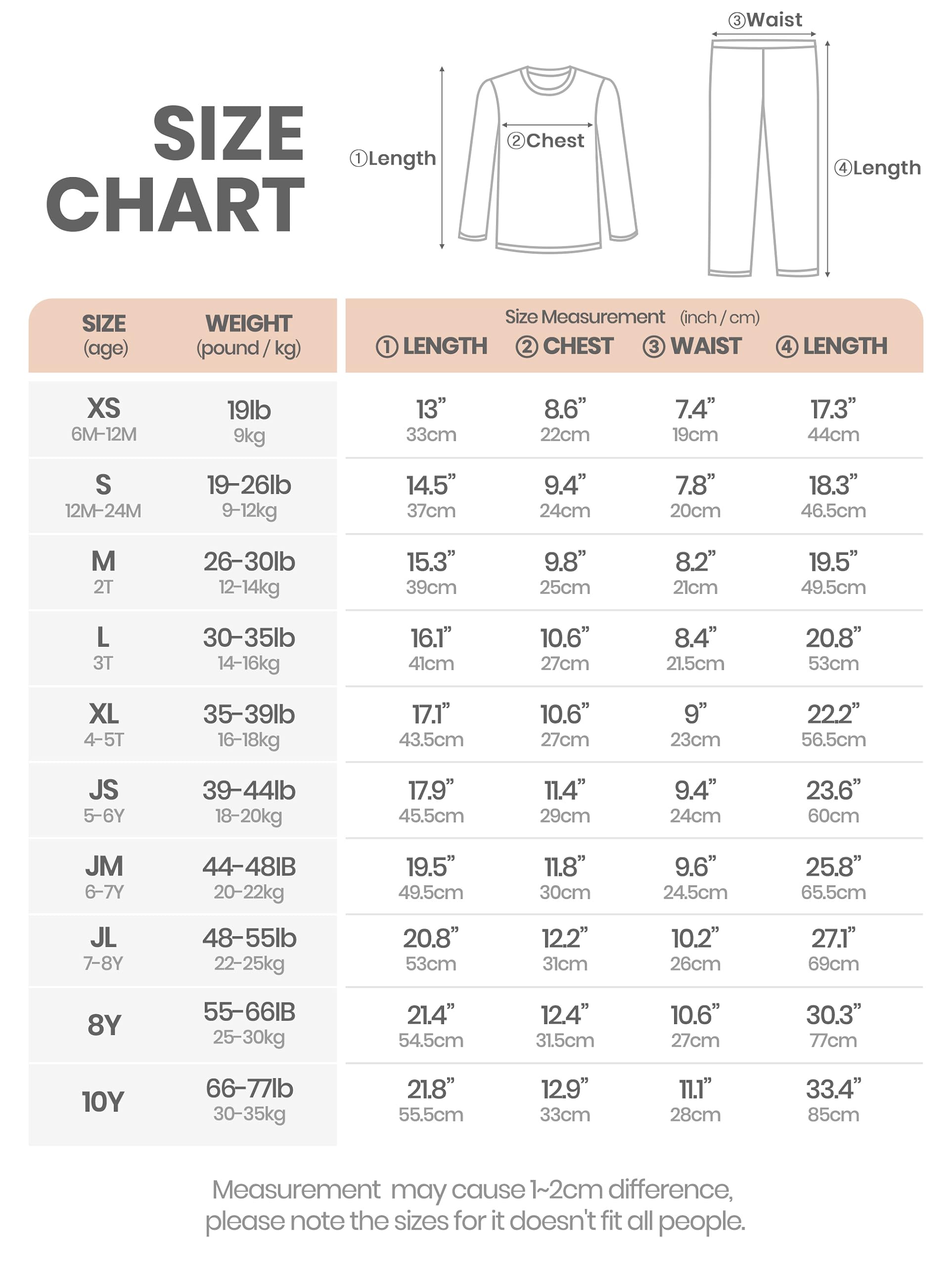 - Q: What is the fit like for this pajama set? A: The pajama set is designed for a snug and comfortable fit, ensuring that it stays in place while your child sleeps.