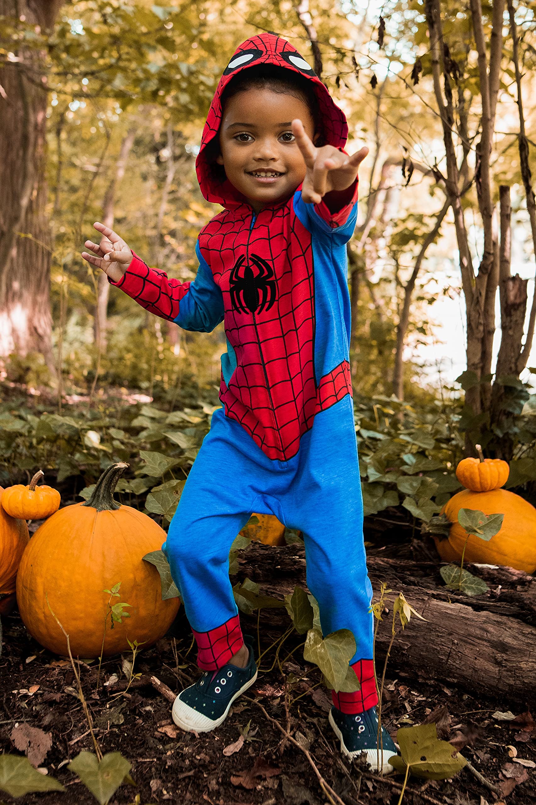 - Q: What is the design of the coverall? A: The coverall features a stylish design that resembles Spider-Man's iconic costume, complete with a comfortable hood lining.