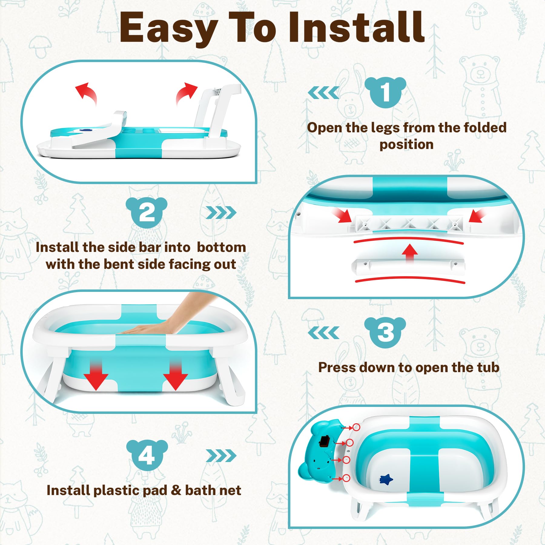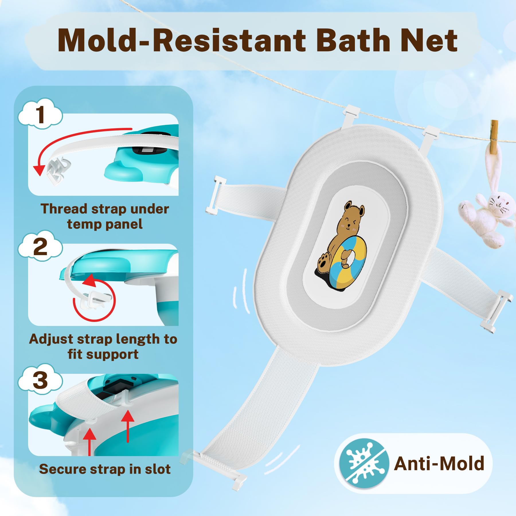- Q: Does this bathtub include a temperature guide? A: Yes, the bathtub comes with a built-in thermometer to help ensure the water temperature is safe and comfortable for your baby.