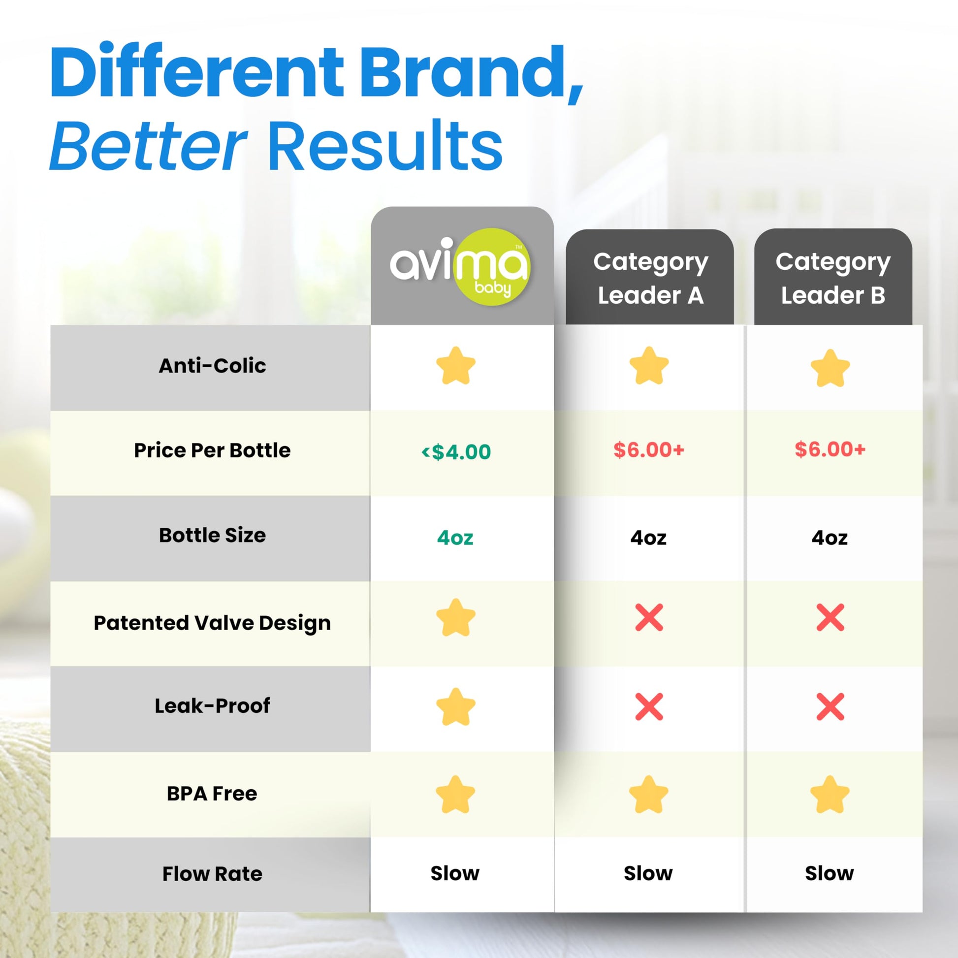 - Q: How many bottles are included in a set? A: Each set of Avima baby bottles includes a total of 8 bottles.