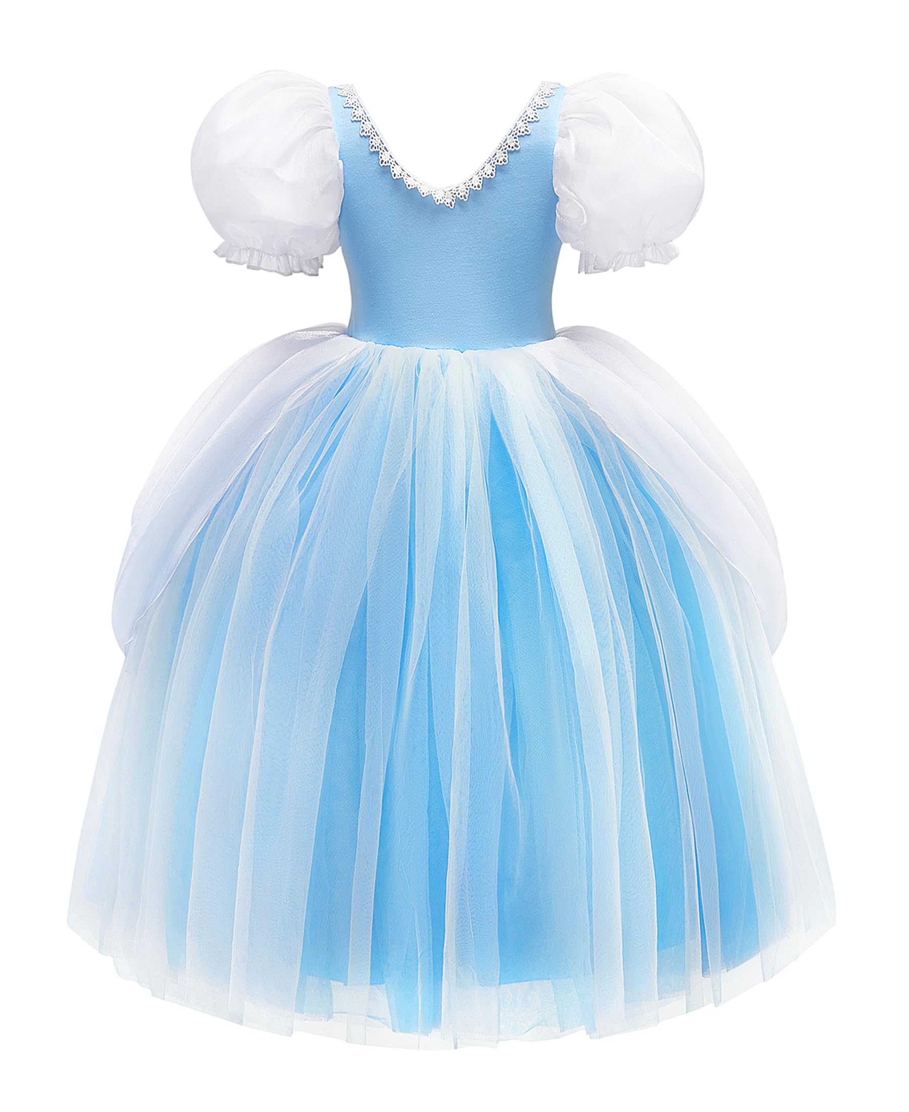 - Q: Does the costume have any special design features? A: Yes, the costume features cute bubble sleeves and a fancy layered design to enhance the Cinderella theme.