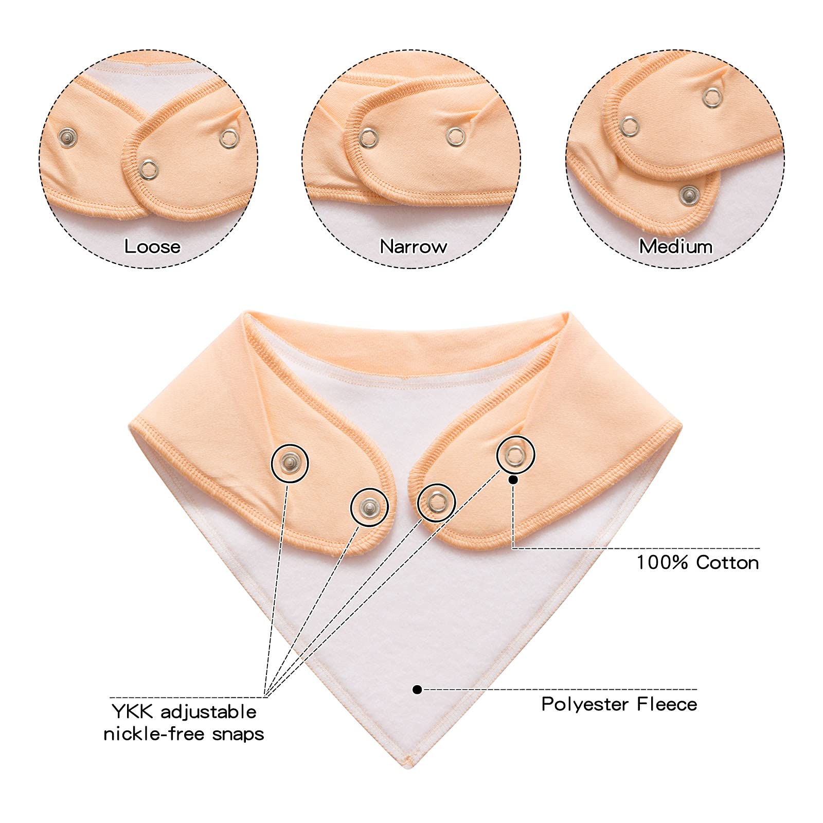 - Q: Are these bibs adjustable for growing babies? A: Yes, the bibs feature two adjustable nickel-free snap closures, allowing you to customize the fit as your baby grows from newborn to toddler, accommodating ages ranging from 3 to 24 months.
