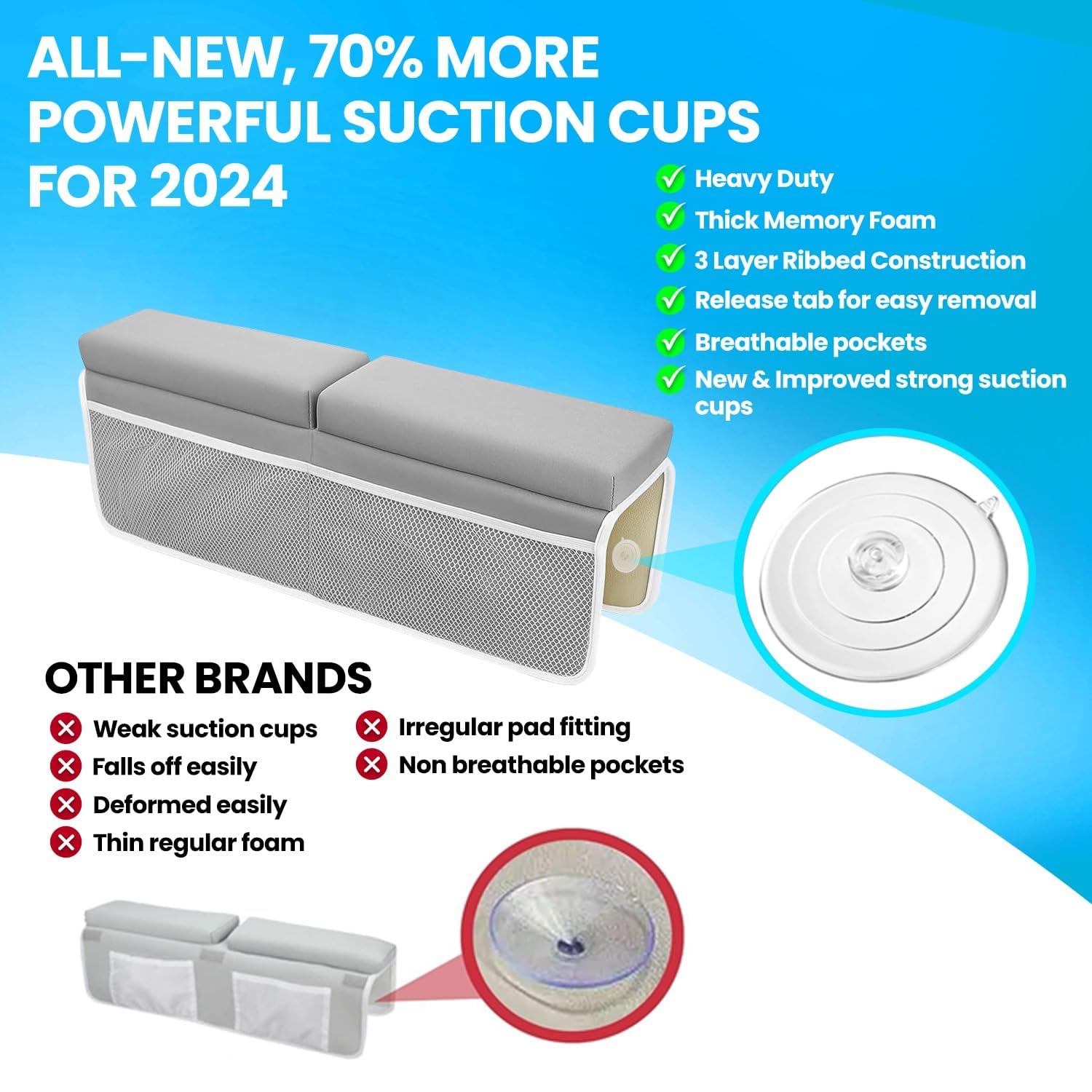 - Q: Are there any storage compartments in the elbow rest pad? A: Yes, the elbow rest pad is equipped with spacious compartments to store bath time essentials such as shampoos, toys, and brushes.