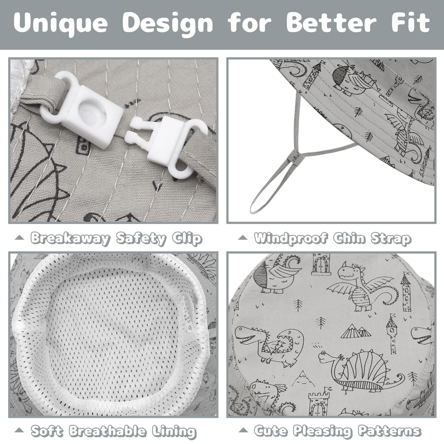 - Q: How does the adjustable feature of the Baby Sun Hat work? A: The Baby Sun Hat features adjustable chin straps without plastic buckles for a customized fit, and it includes a breakaway safety clip for added security.