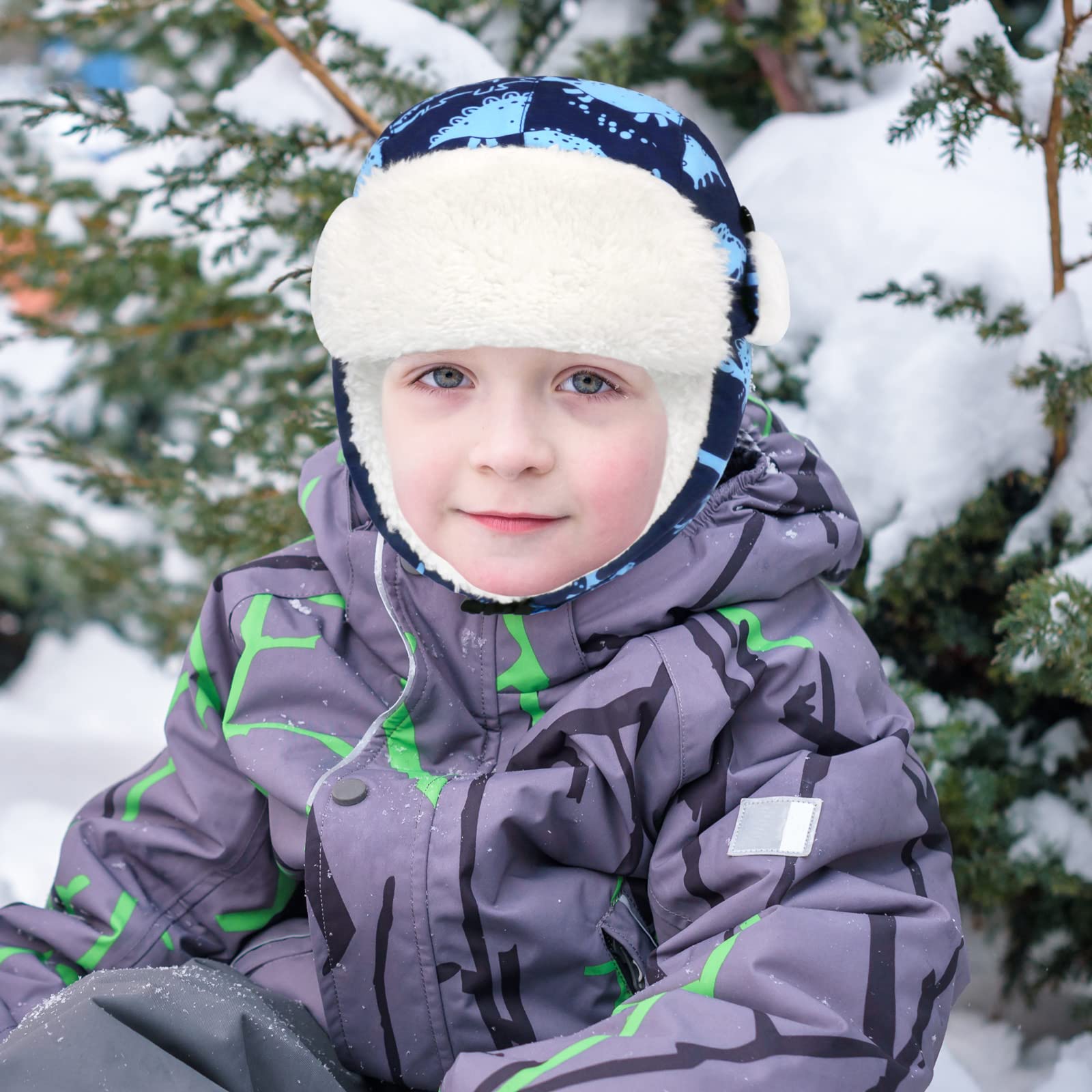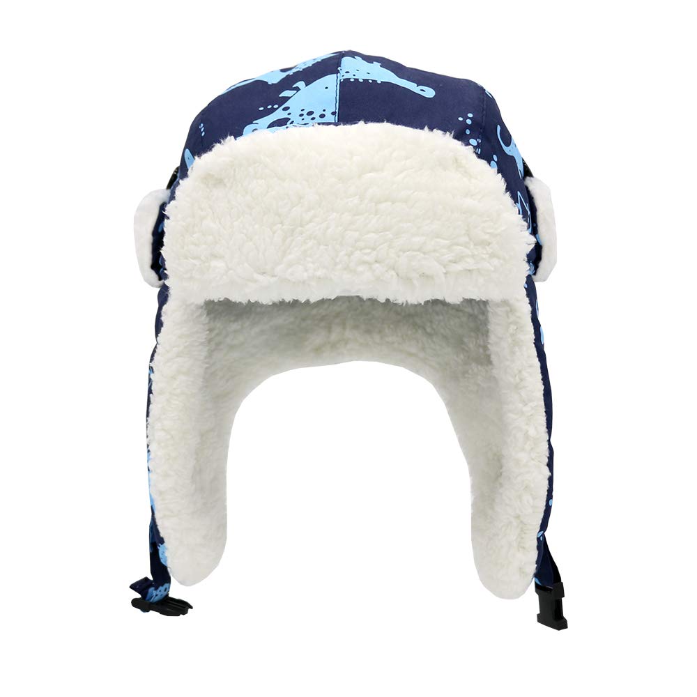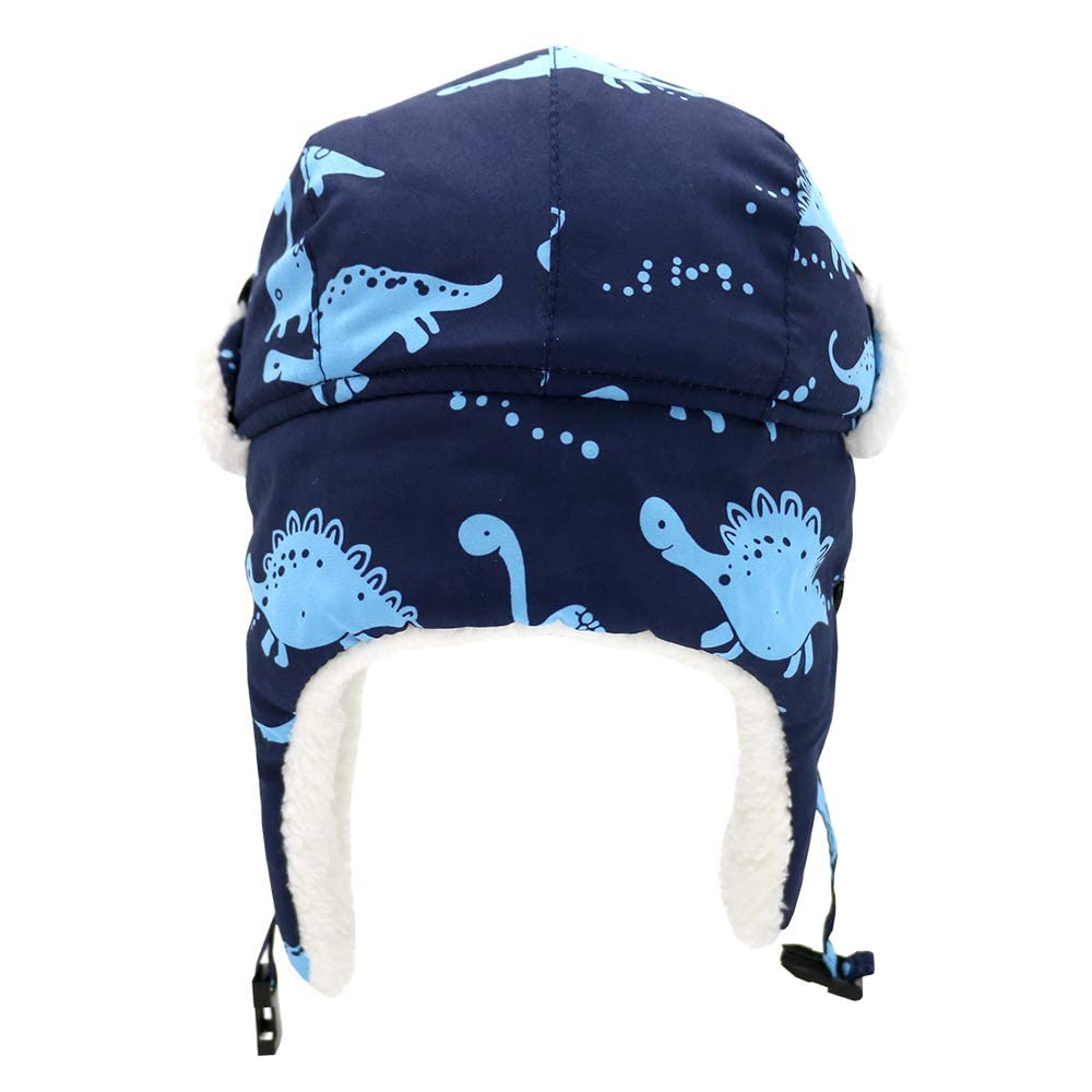 Baby Boy Hats Toddler Winter Hat Sherpa Lined Warm Trapper Hat Fleece Girl Infant Beanie Blue Dinosaur 2-5T