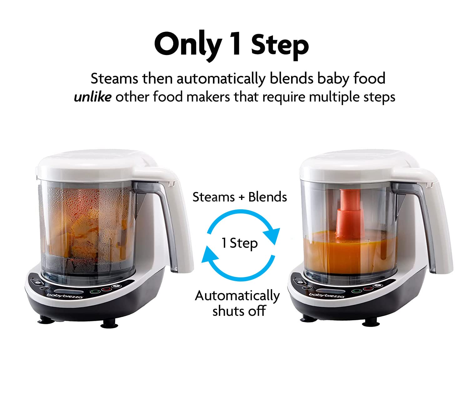 - Q: How does the Baby Brezza One Step Baby Food Maker work? A: The Baby Brezza One Step Baby Food Maker automatically steams and blends homemade baby food in one easy step. You just need to press a button, and it does the rest, preparing food in as little as 10 minutes.