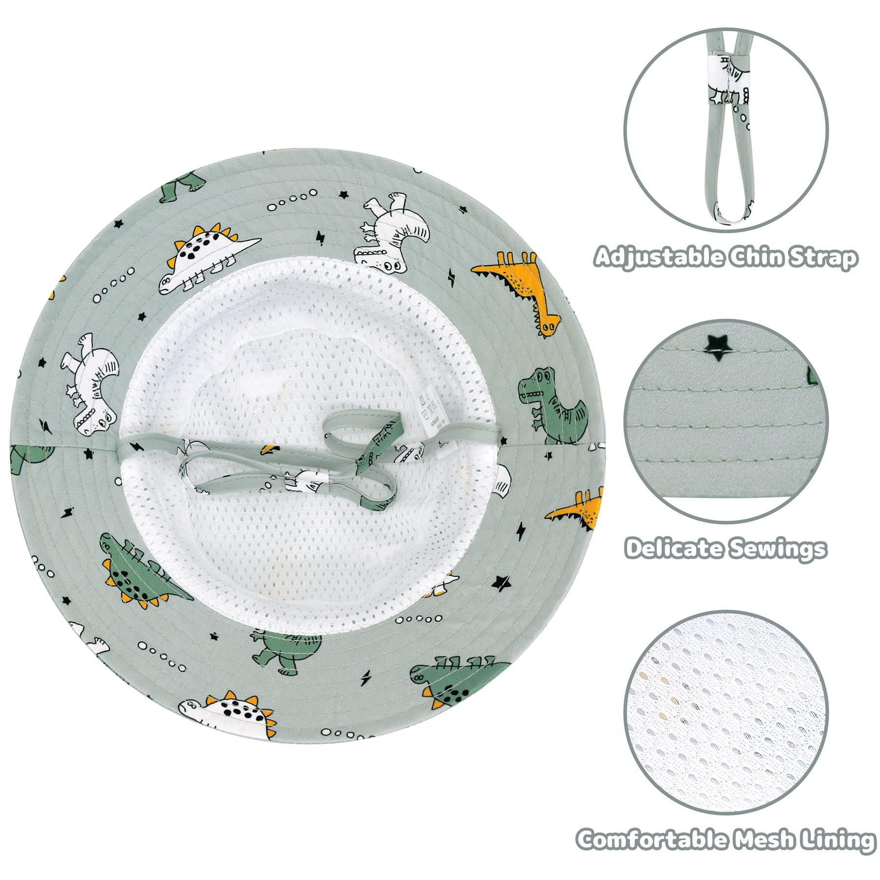 - Q: What type of design does the Baby Bucket Hat feature? A: The Baby Bucket Hat features unique and vivid animal patterns that add fun and stimulate curiosity in toddlers.