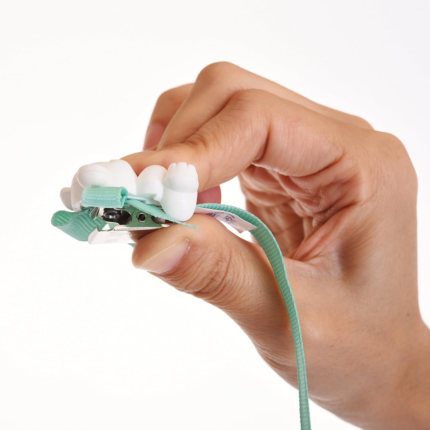 - Q: Can I use the clip with all types of pacifiers? A: Yes, the clip is designed to work with various types of pacifiers, using either a snap closure or an included silicone ring for button-style pacifiers.