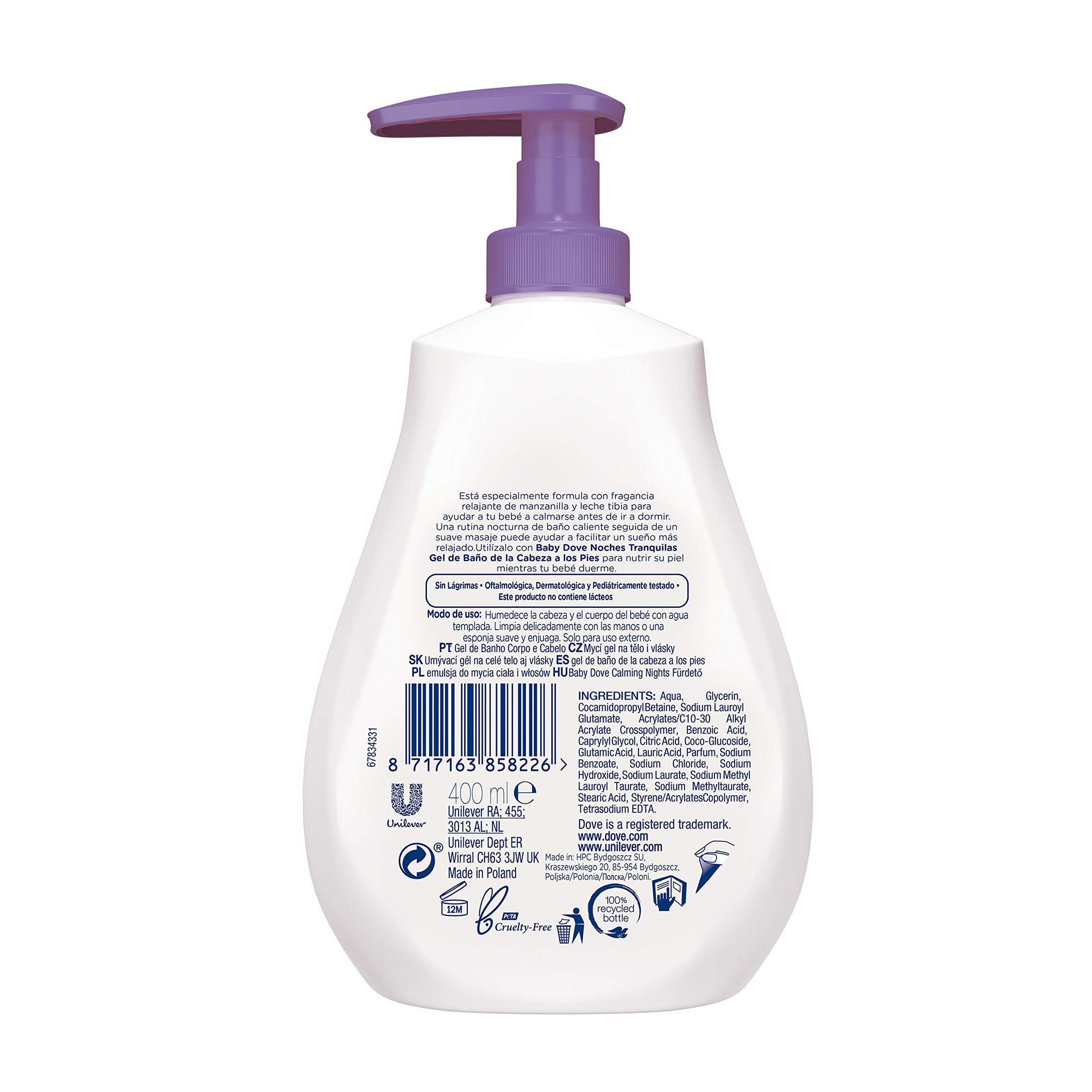 • Q: What is the recommended bathing routine with this product? A: For optimal results, it is recommended to use Baby Dove Calming Moisture Wash during a warm bath, followed by a gentle massage to help facilitate more restful sleep.