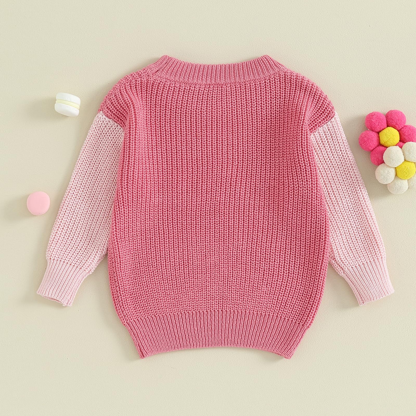 - Q: Does this sweater come in different colors? A: The sweater is available in a pink color with love embroidery, making it a cute choice for your baby girl.