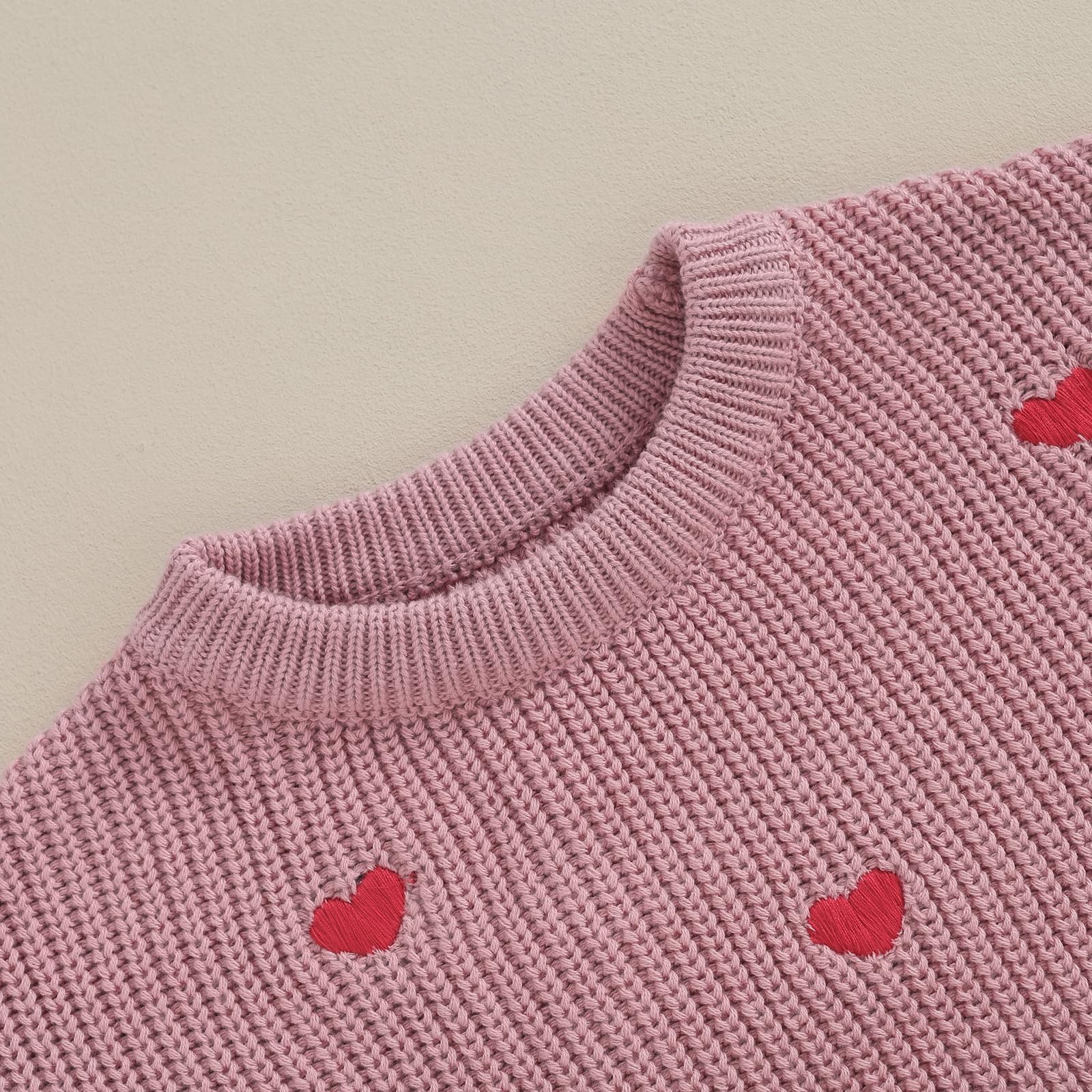 - Q: Does this sweater feature any special designs? A: Yes, the sweater features cute heart embroidery and a 'Sweet Valentines Day' letter print, adding a charming touch for your baby girl.