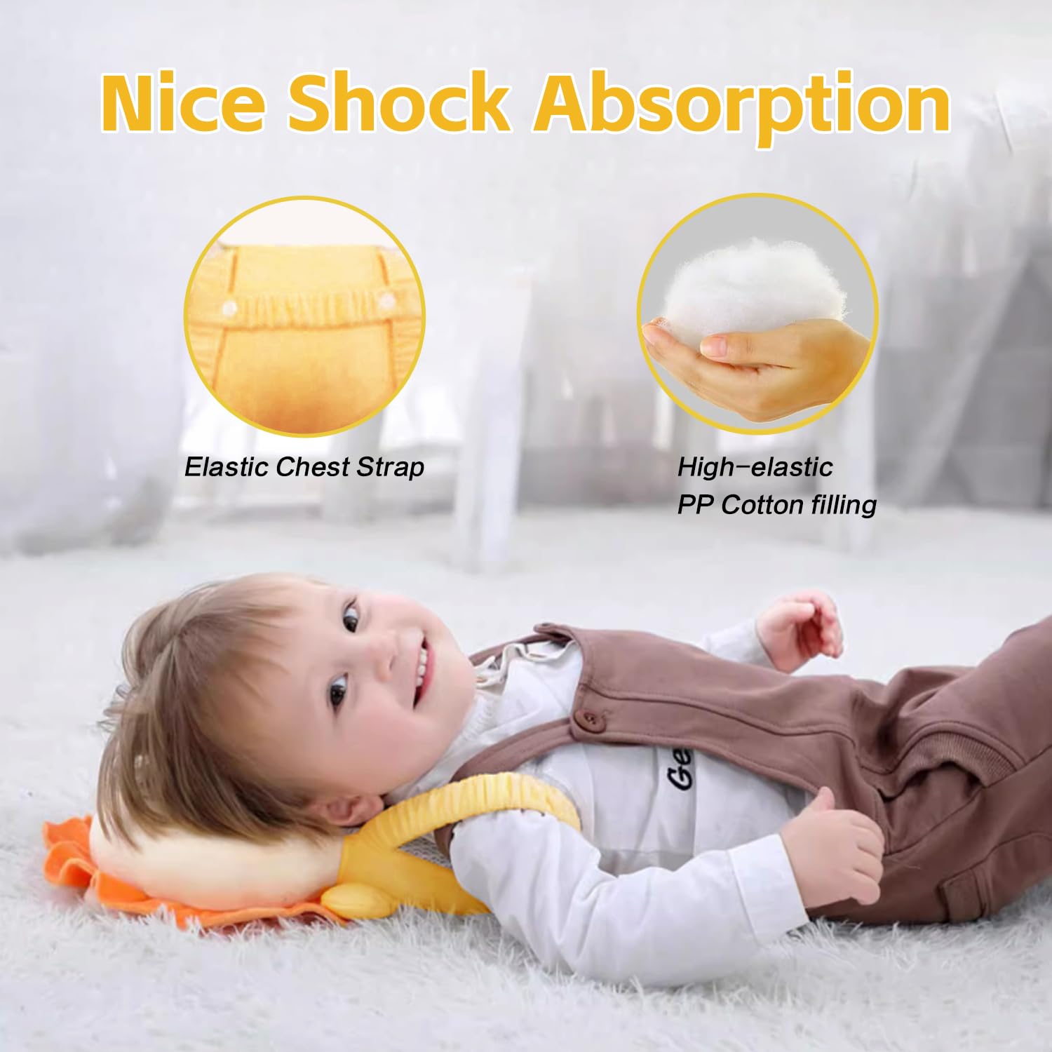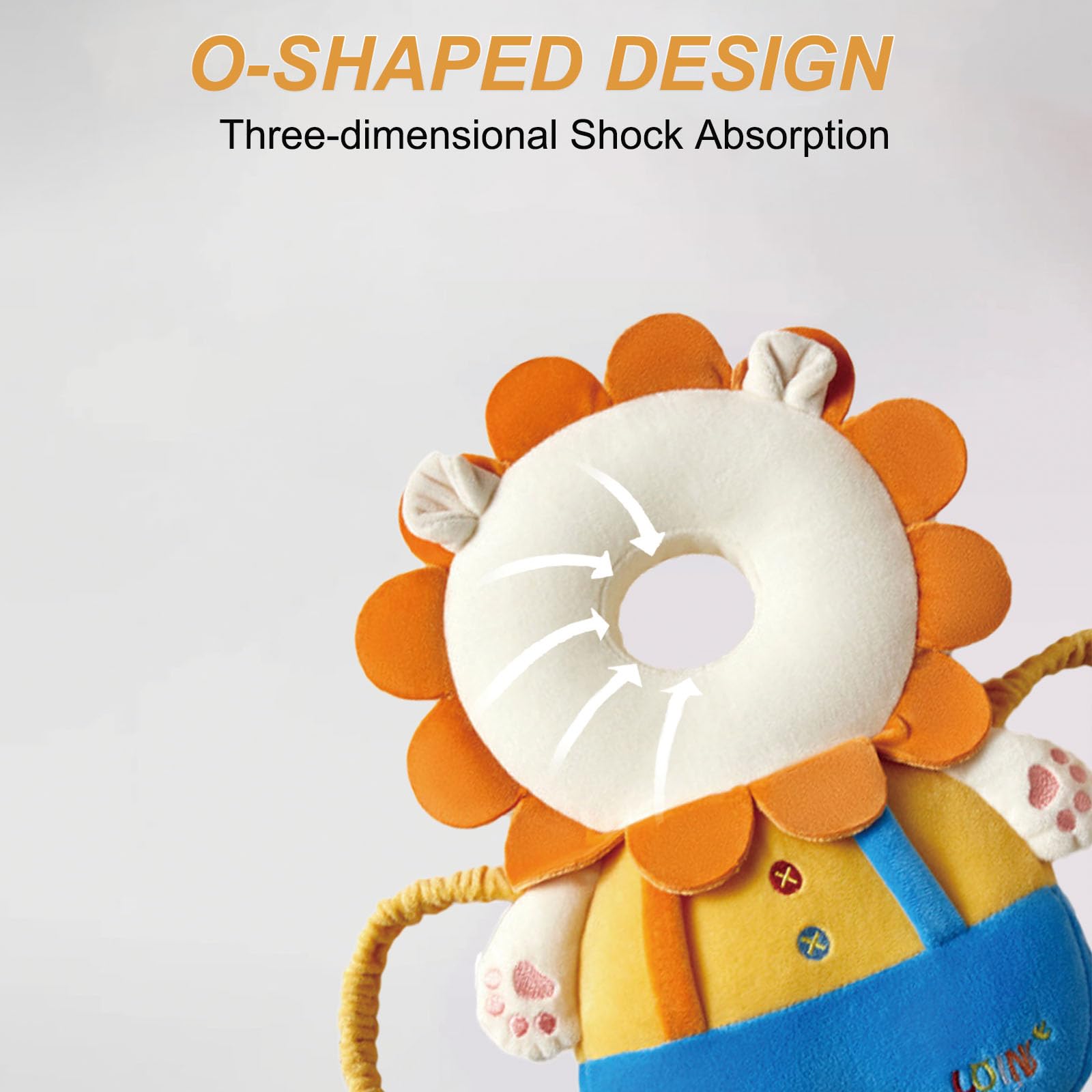 - Q: How does the head protector help in preventing injuries? A: The head protector features an 'O-shaped' design that disperses pressure in all directions, effectively protecting your baby's head and back while crawling and walking.