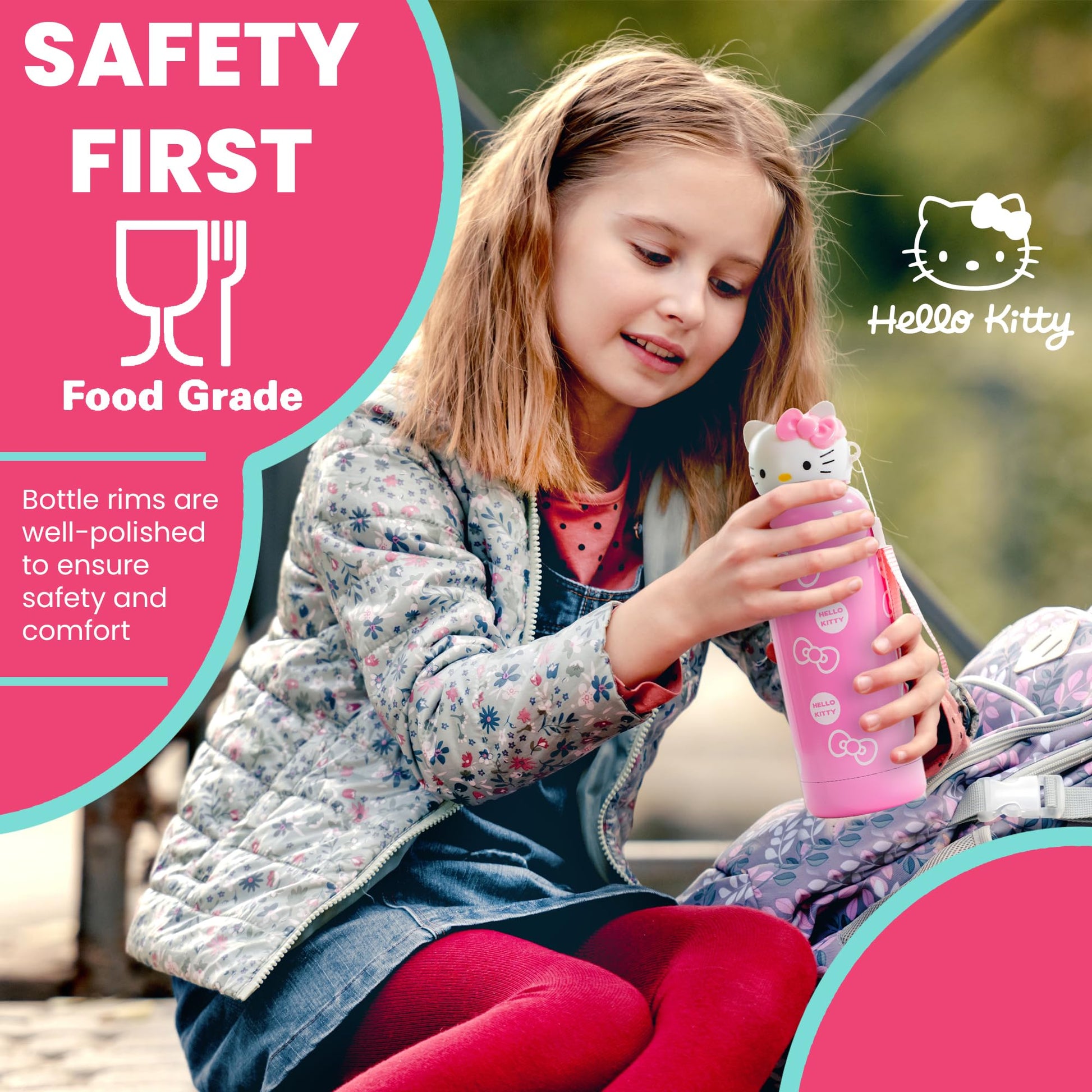 - Q: What makes this water bottle unique? A: The water bottle features an animated design of the beloved Hello Kitty character, making hydration fun for kids while also being functional and practical.