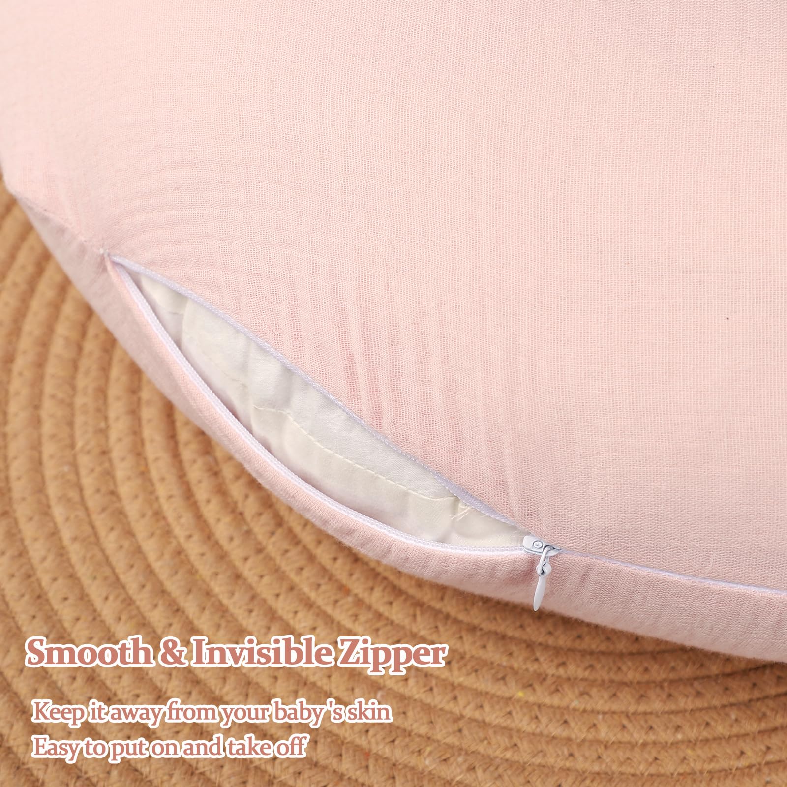 • Q: Is this nursing pillow cover reversible? A: Yes, the nursing pillow cover is reversible, featuring a gentle pink side and textured fabric for added style.