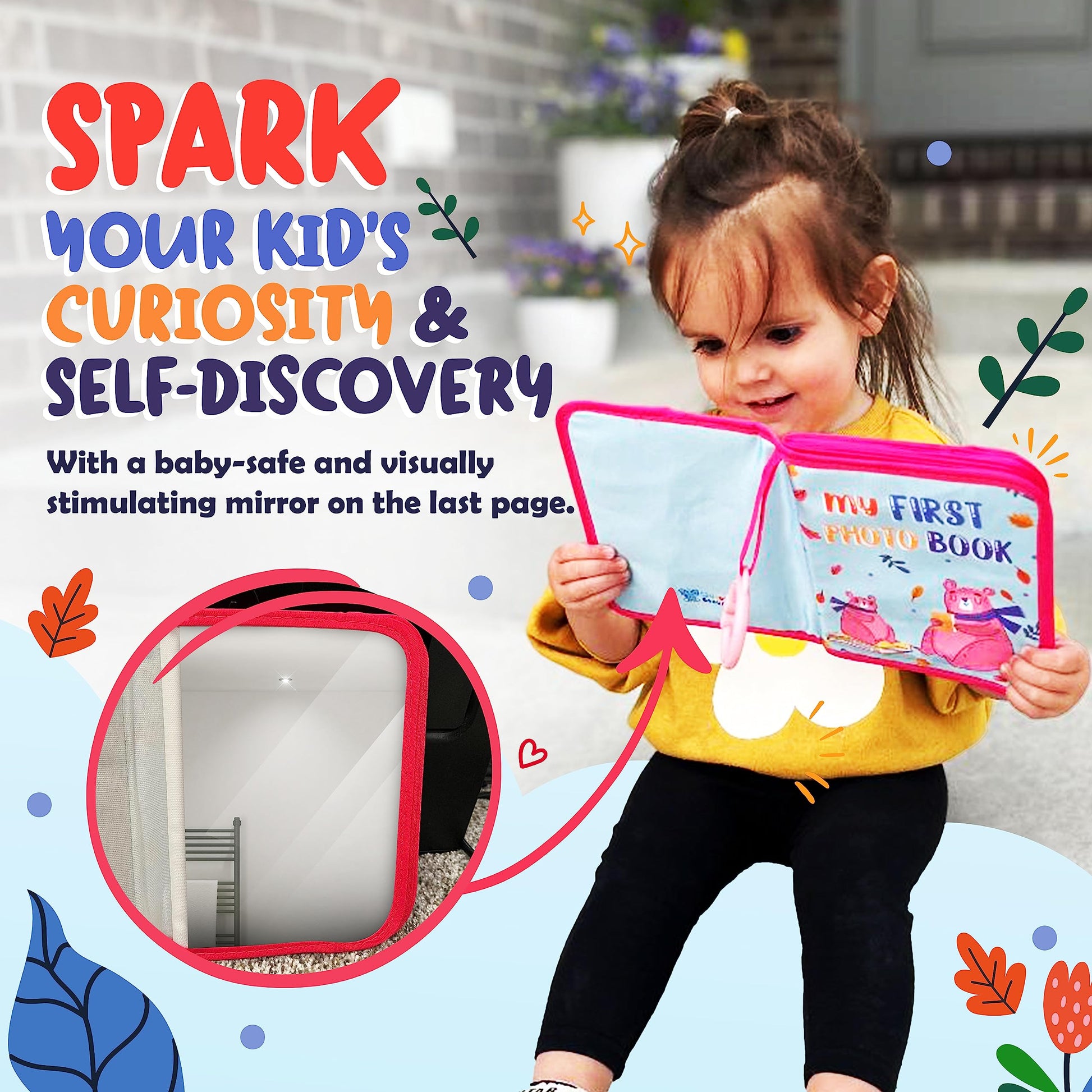 - Q: Does the album include any special features for babies? A: Yes, the last page of the album features a baby-safe mirror that encourages self-discovery and engagement.