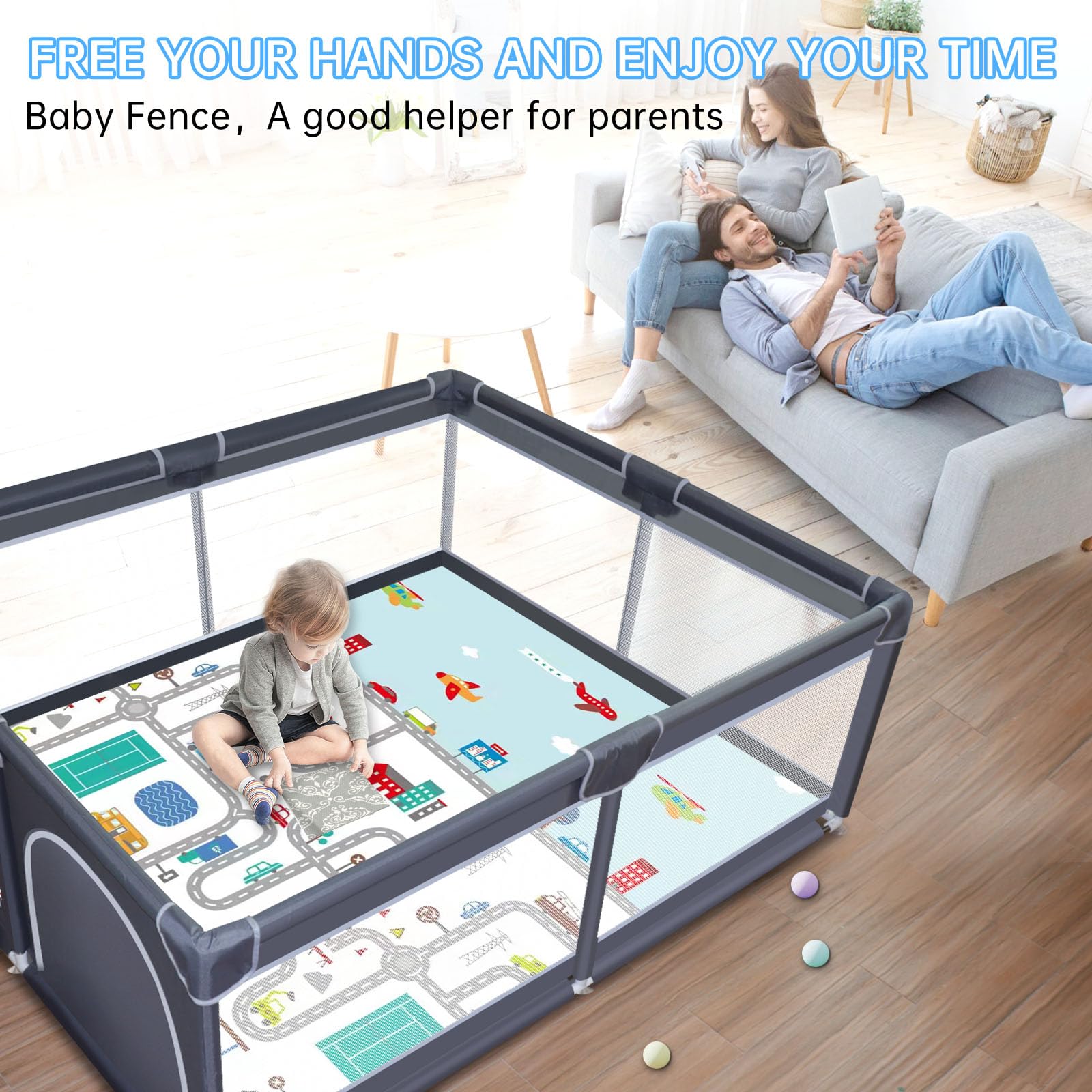 - Q: Does the playpen come with a playmat? A: Yes, the playpen includes a thick XPE soft mat that cushions falls and can be used independently from the playpen.